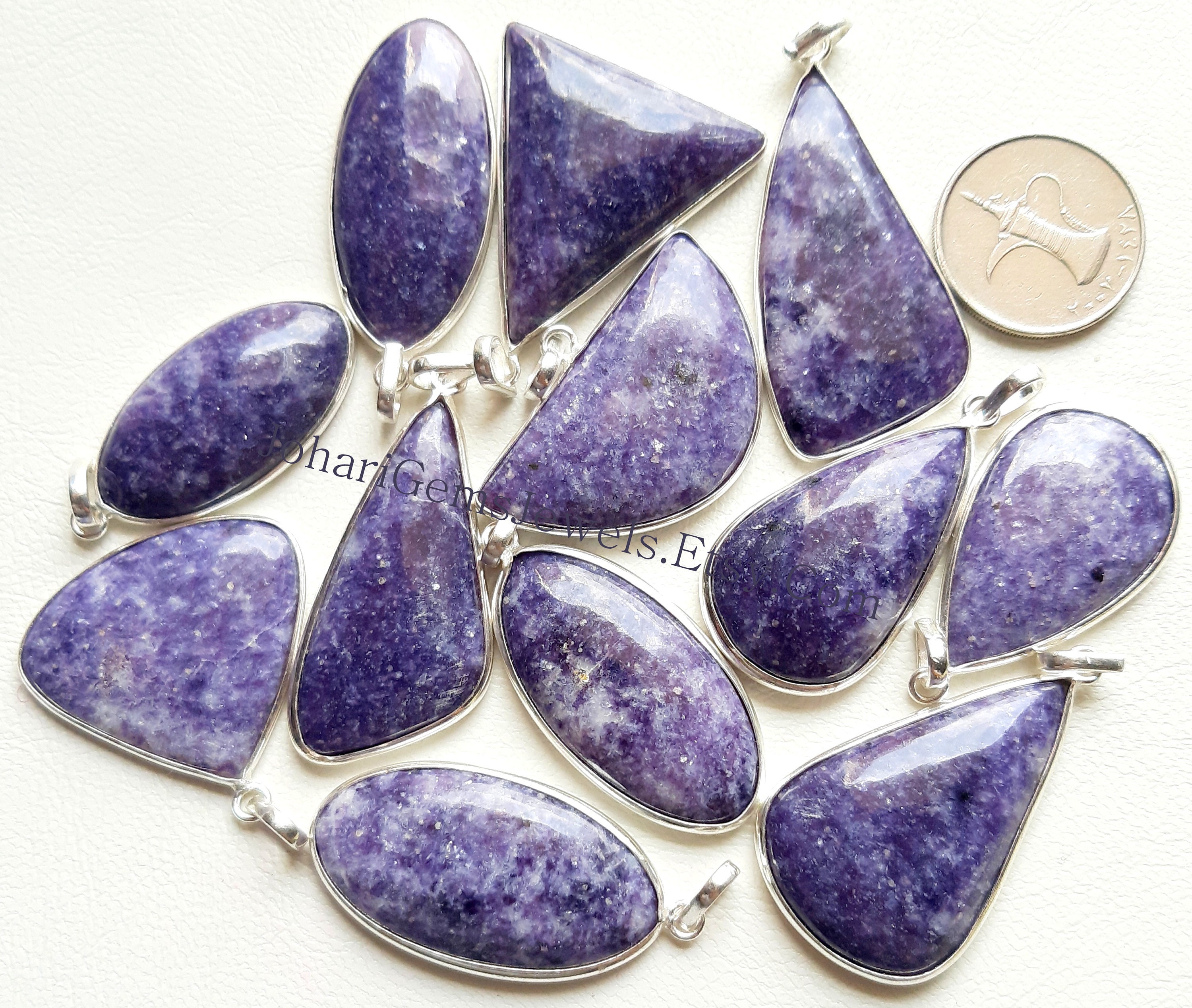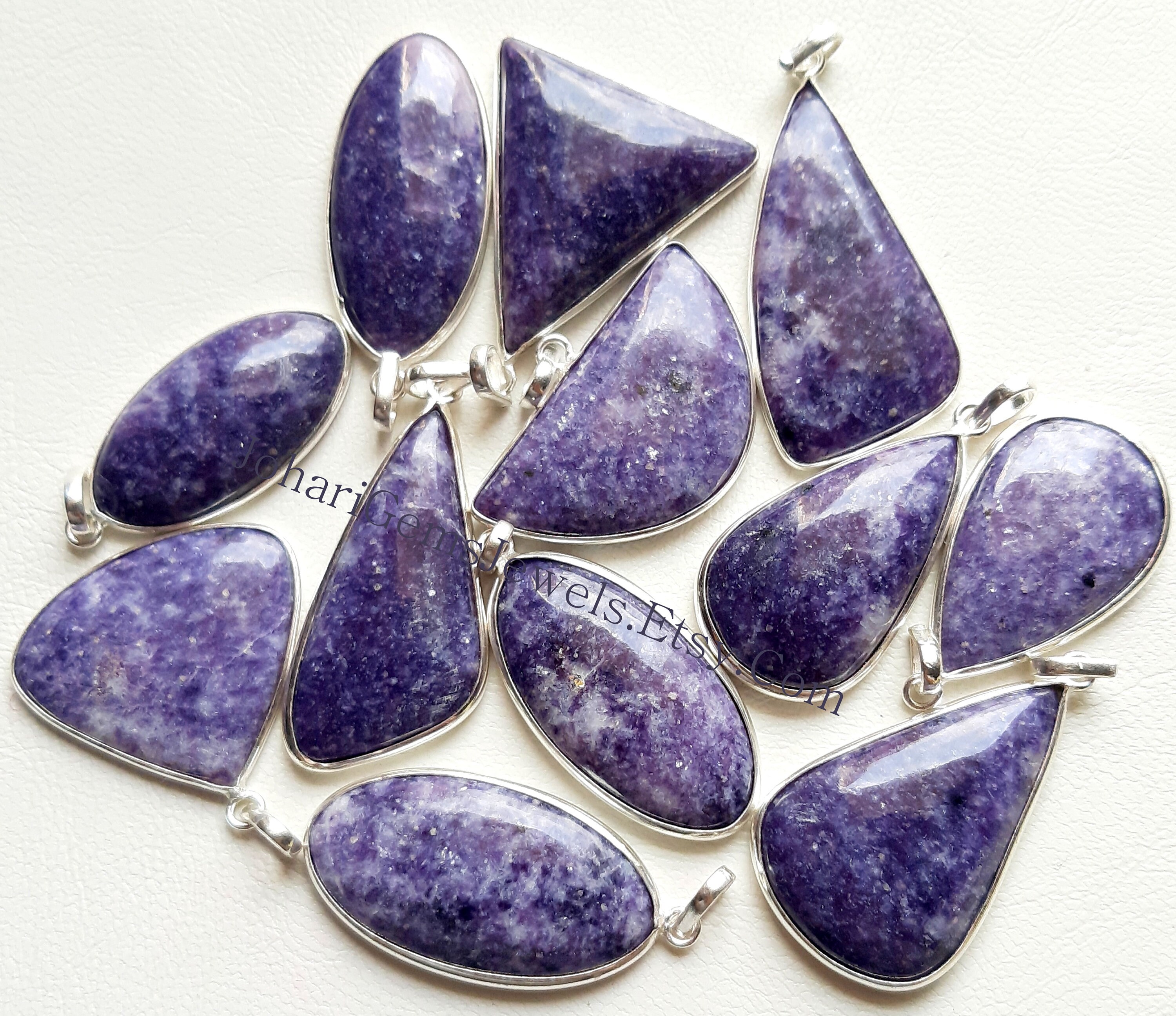 Natural Lepidolite Gemstone Cabochon Pendants, 925 Silver Plated Pendant Necklace With Different Size And Shape, Wholesale Lot, Handmade Pendant