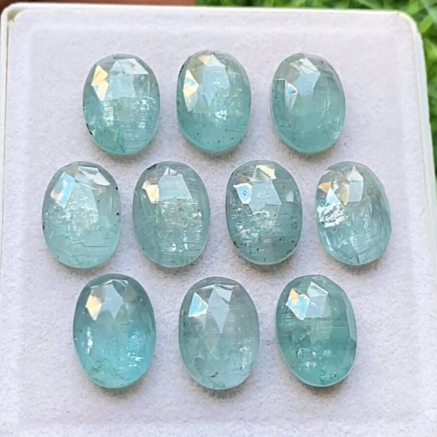 10 Pieces Top Quality Aqua Kyanite Rose Cut 10X14 MM Gemstone for Jewelry Making, AAA+ Natural Aqua Kyanite Rose Cut Gemstone For Handmade Jewelry.