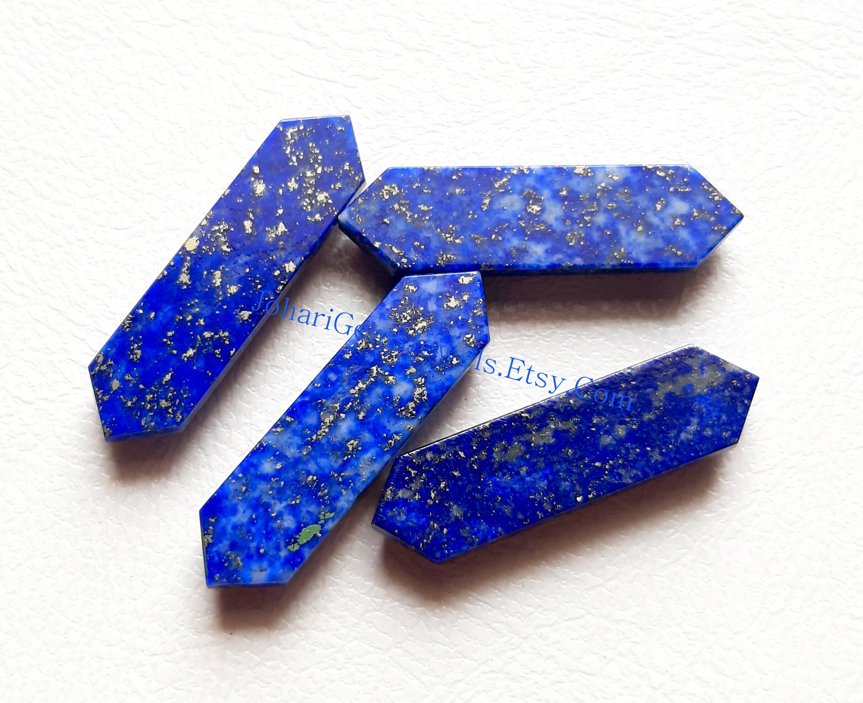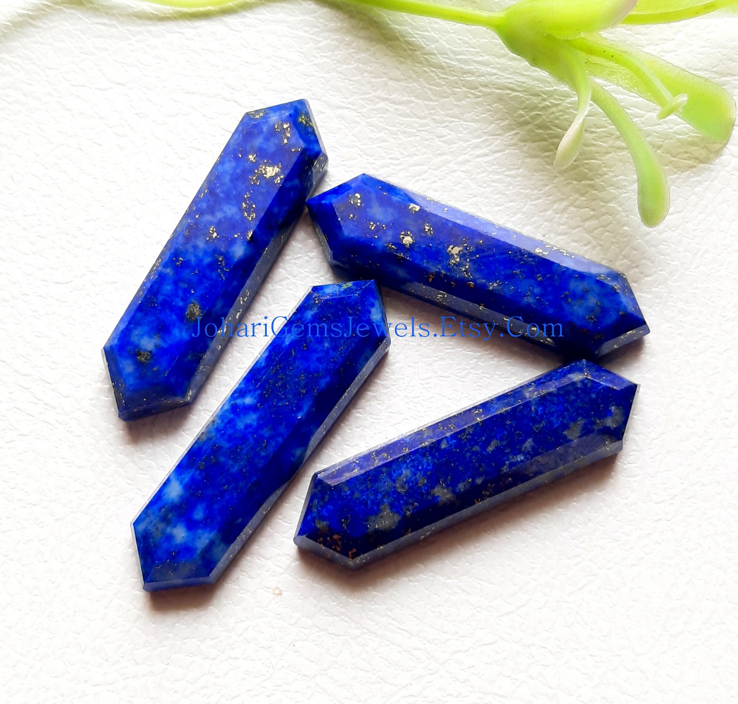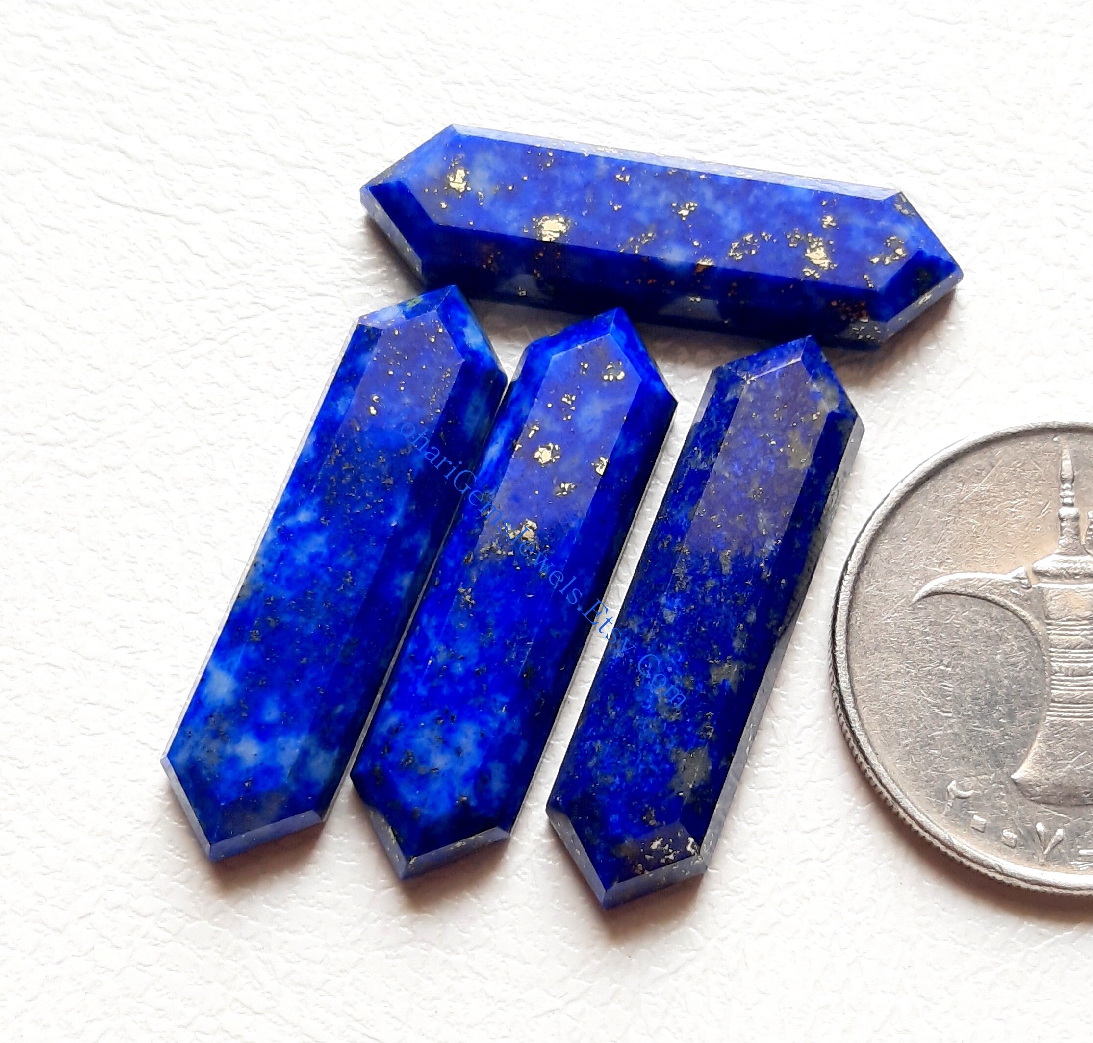 4 Piece Top Quality Lapis Lazuli Pencil Shape Gemstone for Jewelry Making, AAA+ Natural Lapis Lazuli Pencil Shape Flat Back Gemstone For Handmade Pendant, Necklace, Ring and Handmade Jewelry