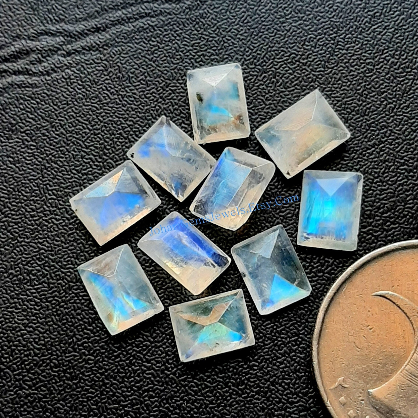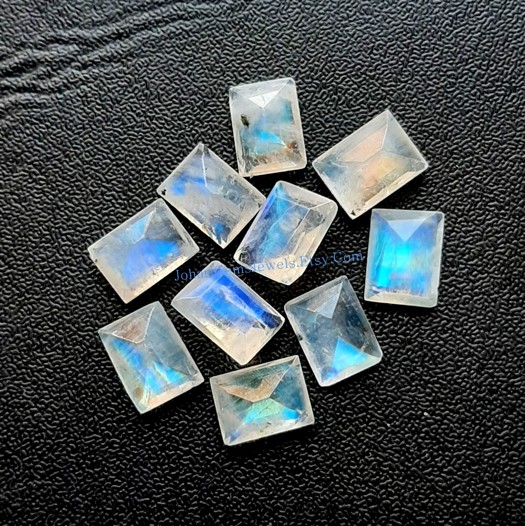 Rainbow Moonstone Faceted 6X8 MM Rectangle Gemstone With Pointed Back 10 Pieces Lot, AAA+ Rainbow Moonstone Gemstone For Handmade Jewelry