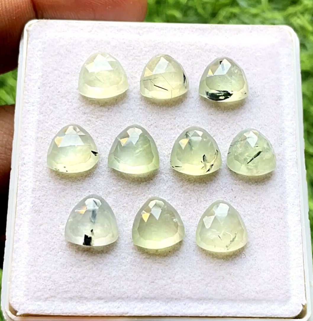 PREHNITE Trillion Shape Rosecut Gemstone 10 Pieces Lot , AAA+ Natural Prehnite With Flat Back For Handmade Jewelry