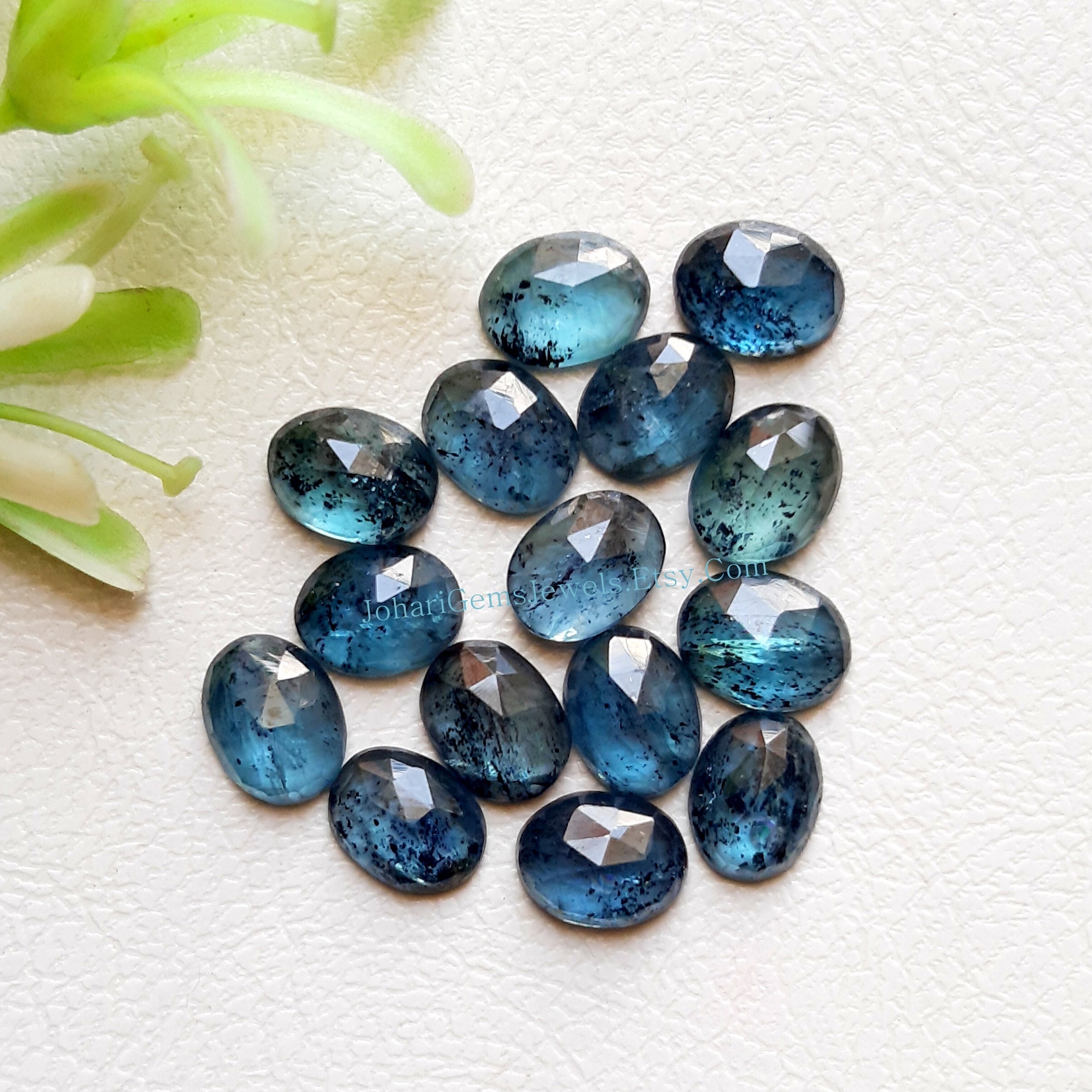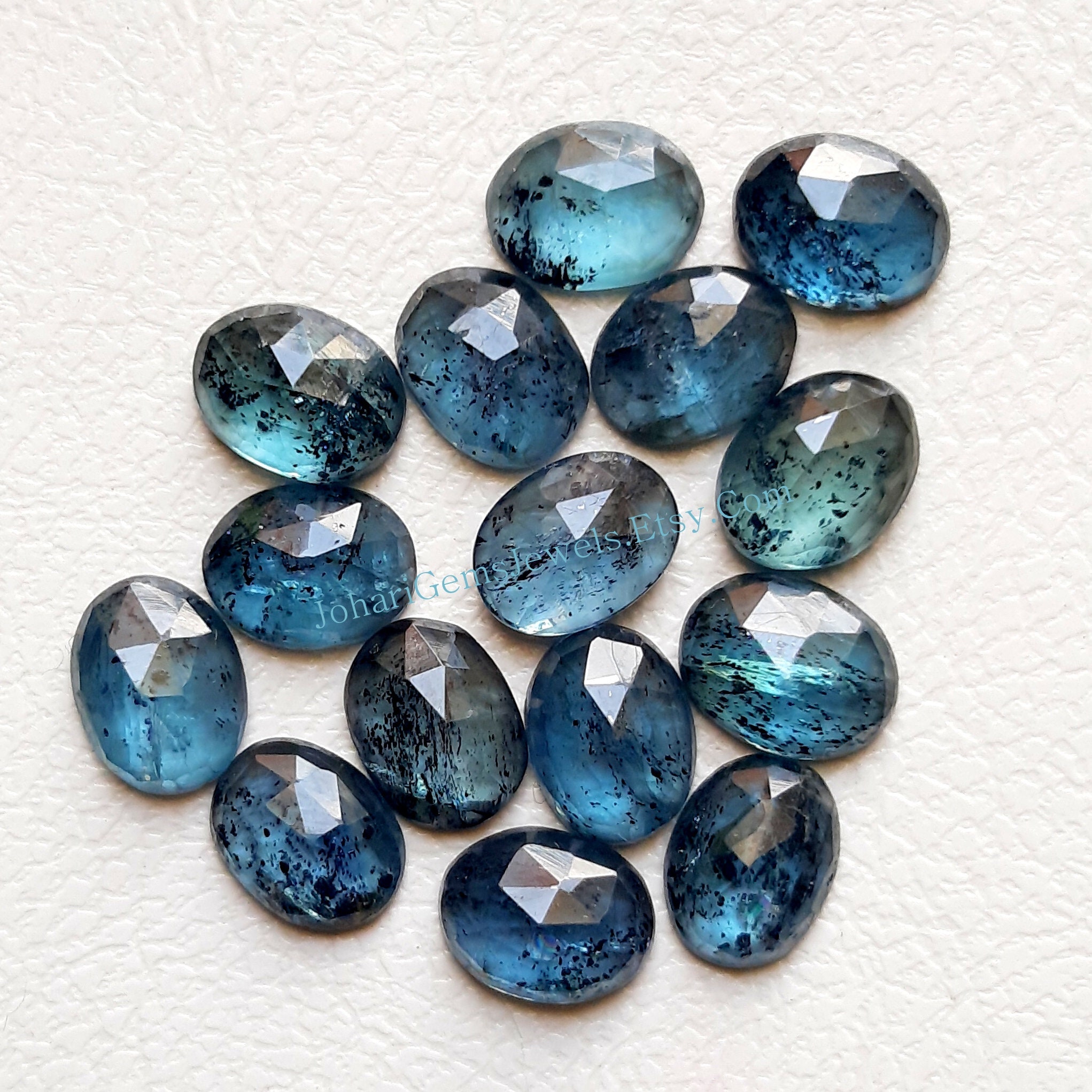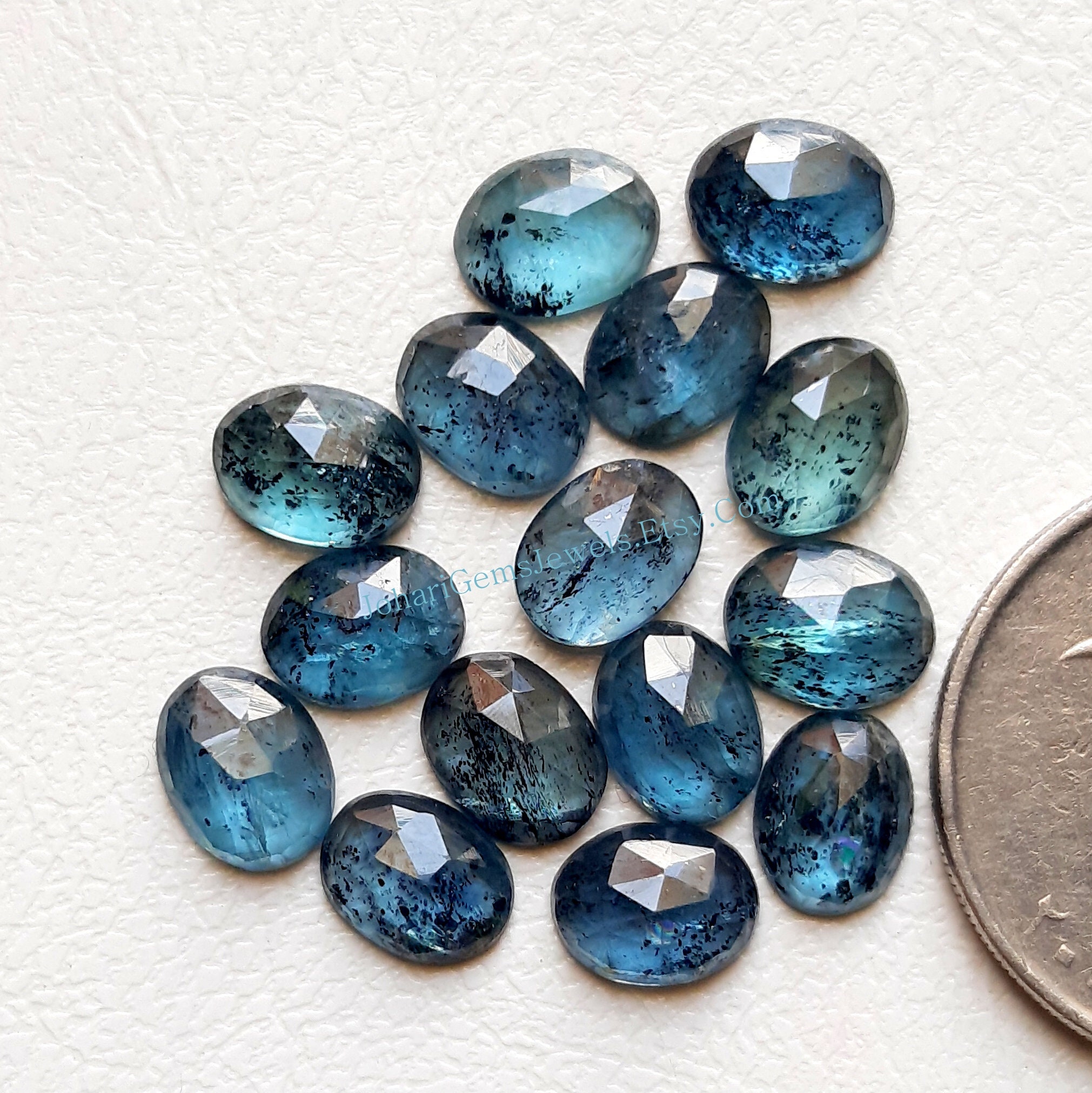 15 Pieces Top Quality Teal Moss Kyanite Rose Cut 6x8 MM Gemstone for Jewelry Making, AAA+ Natural Teal Moss Kyanite Rose Cut Gemstone For Handmade Pendant, Necklace, Ring and Handmade Jewelry.