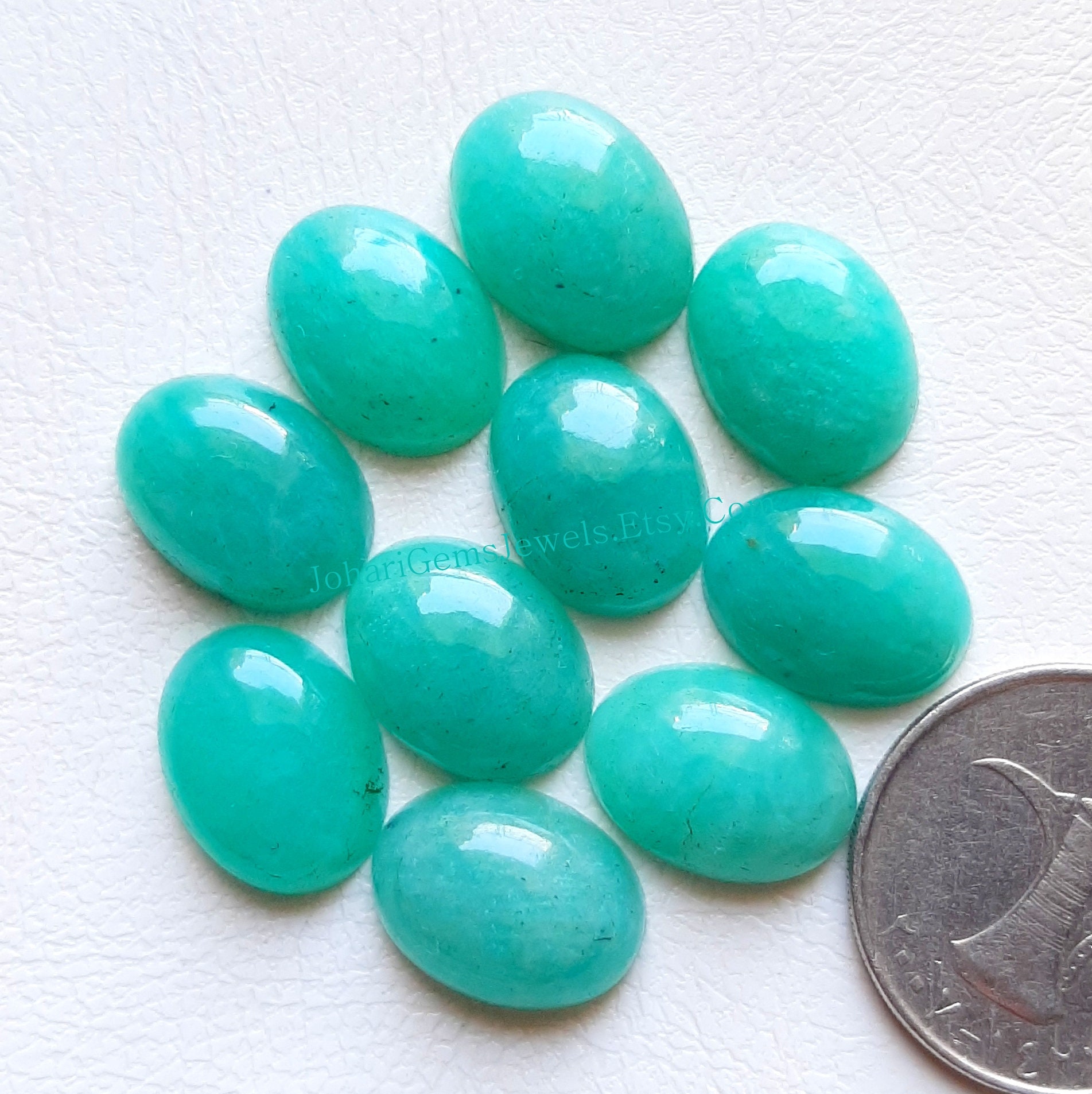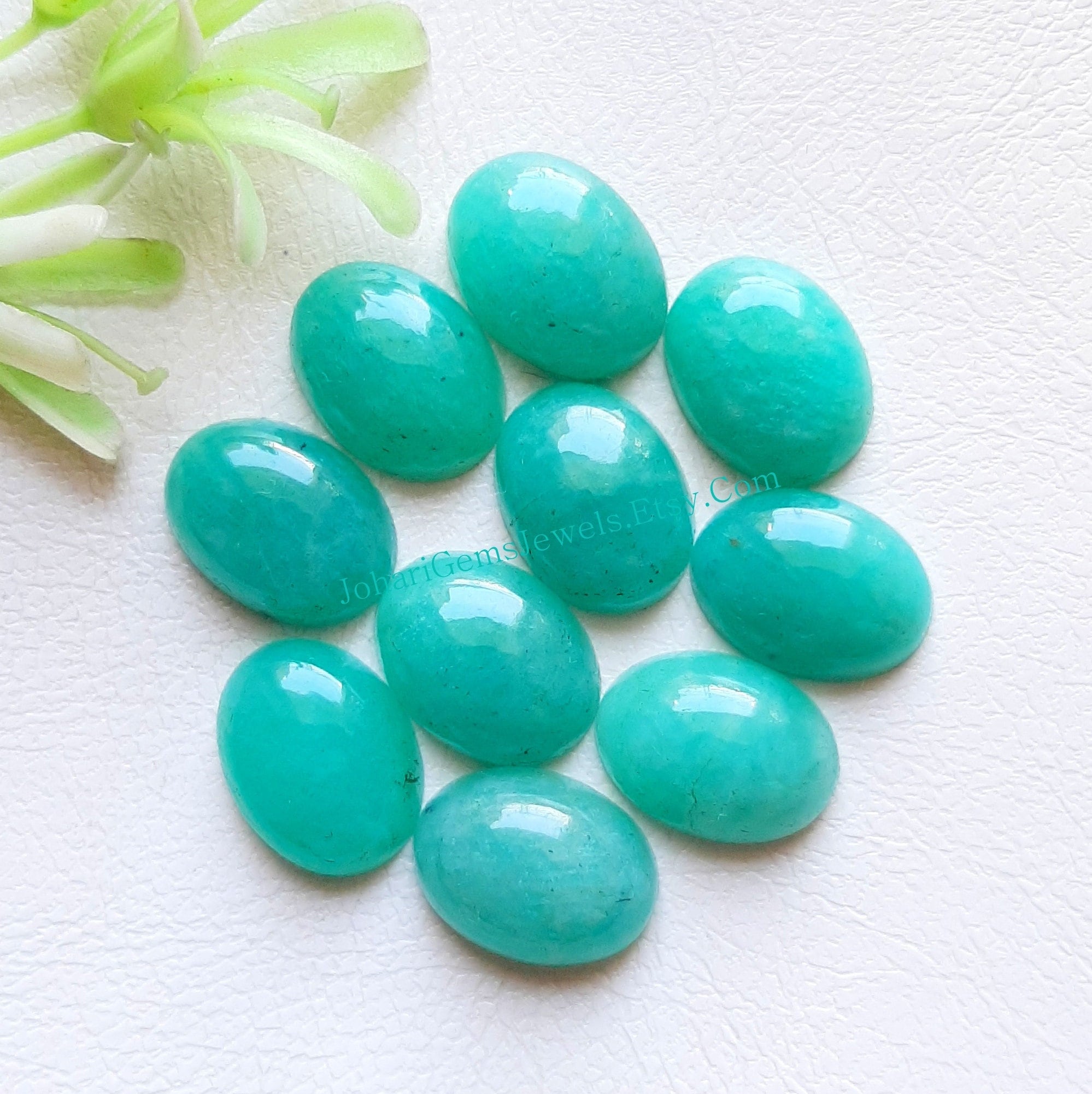 10 Pieces Calibrated AAA+ Natural Amazonite Cabochon Gemstone Lot With Flat Back For Handmade Jewelry