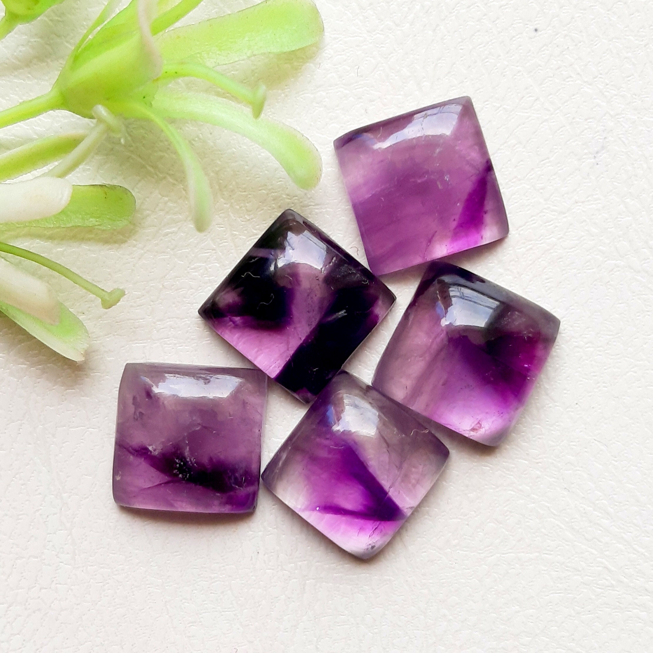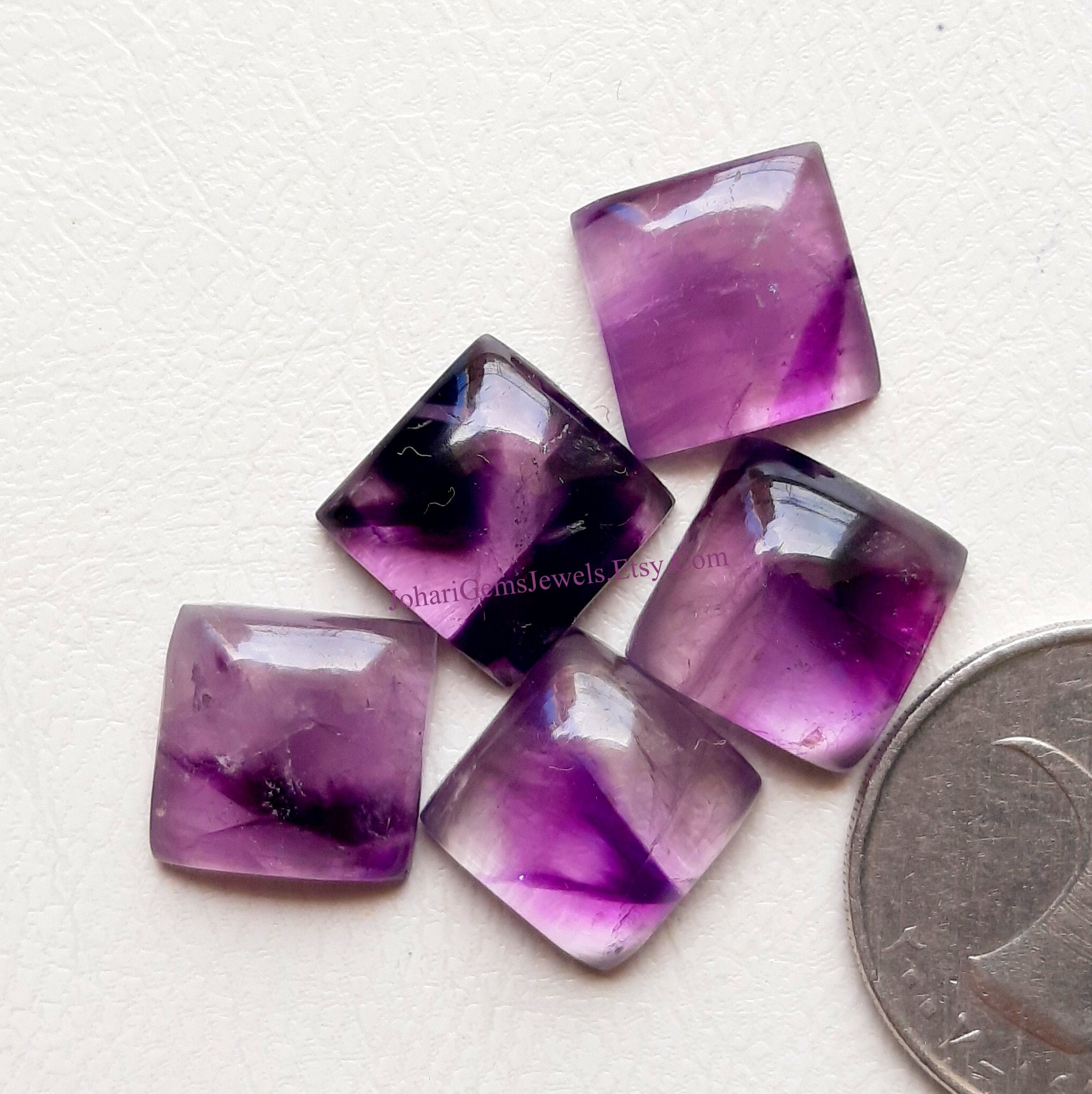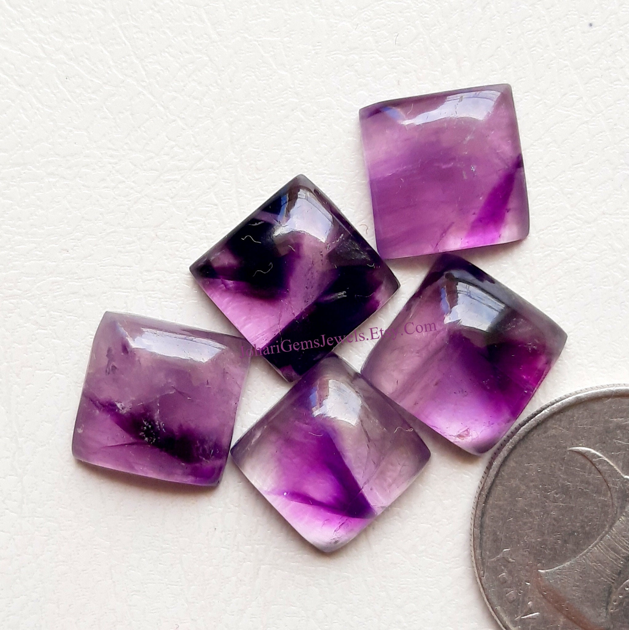 Natural Traphice Amethyst Square Cabochon With Flat Back 5 Pieces Lot, AAA+ Calibrated Trapiche Amethyst Used For Handmade Jewelry