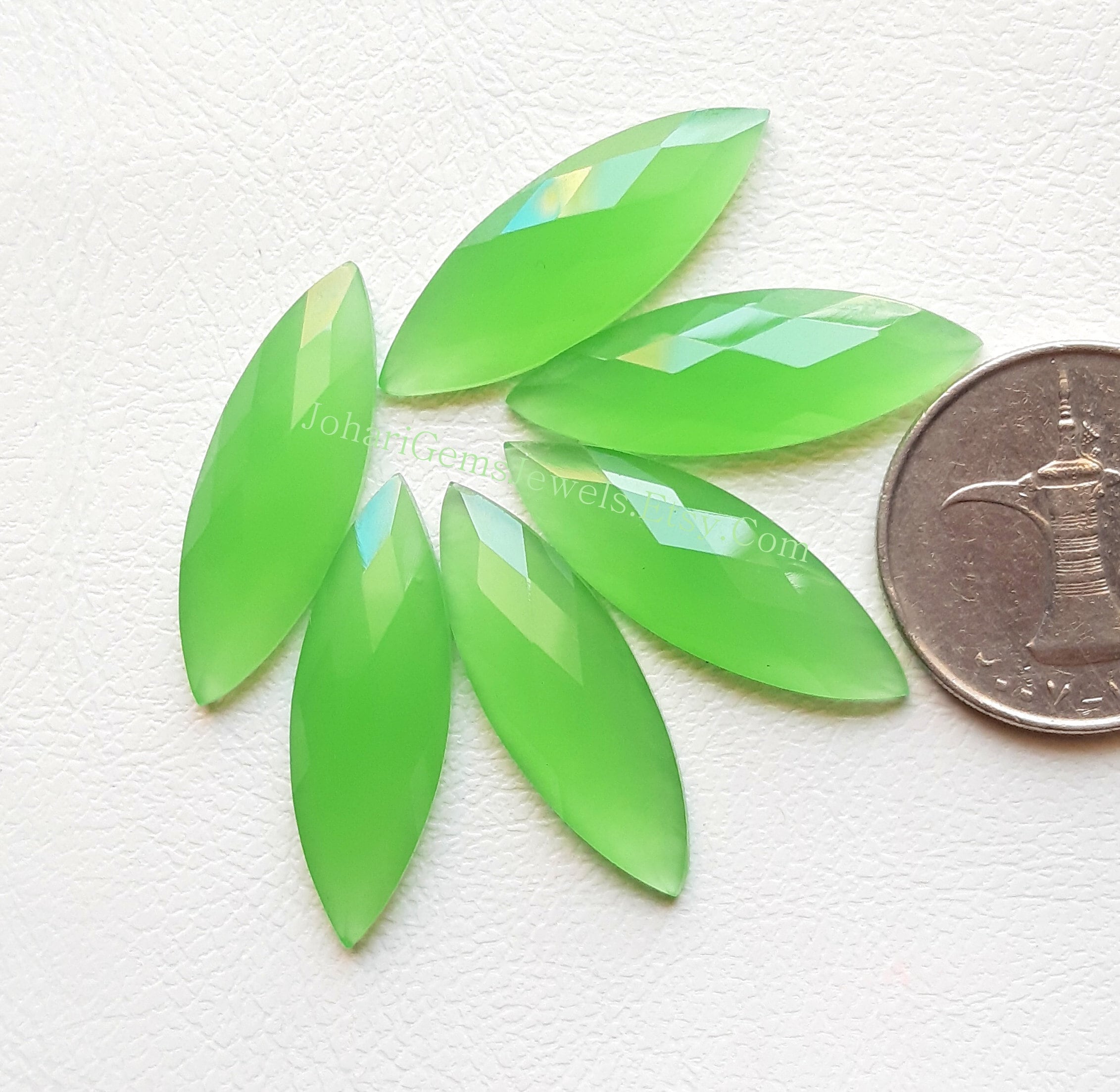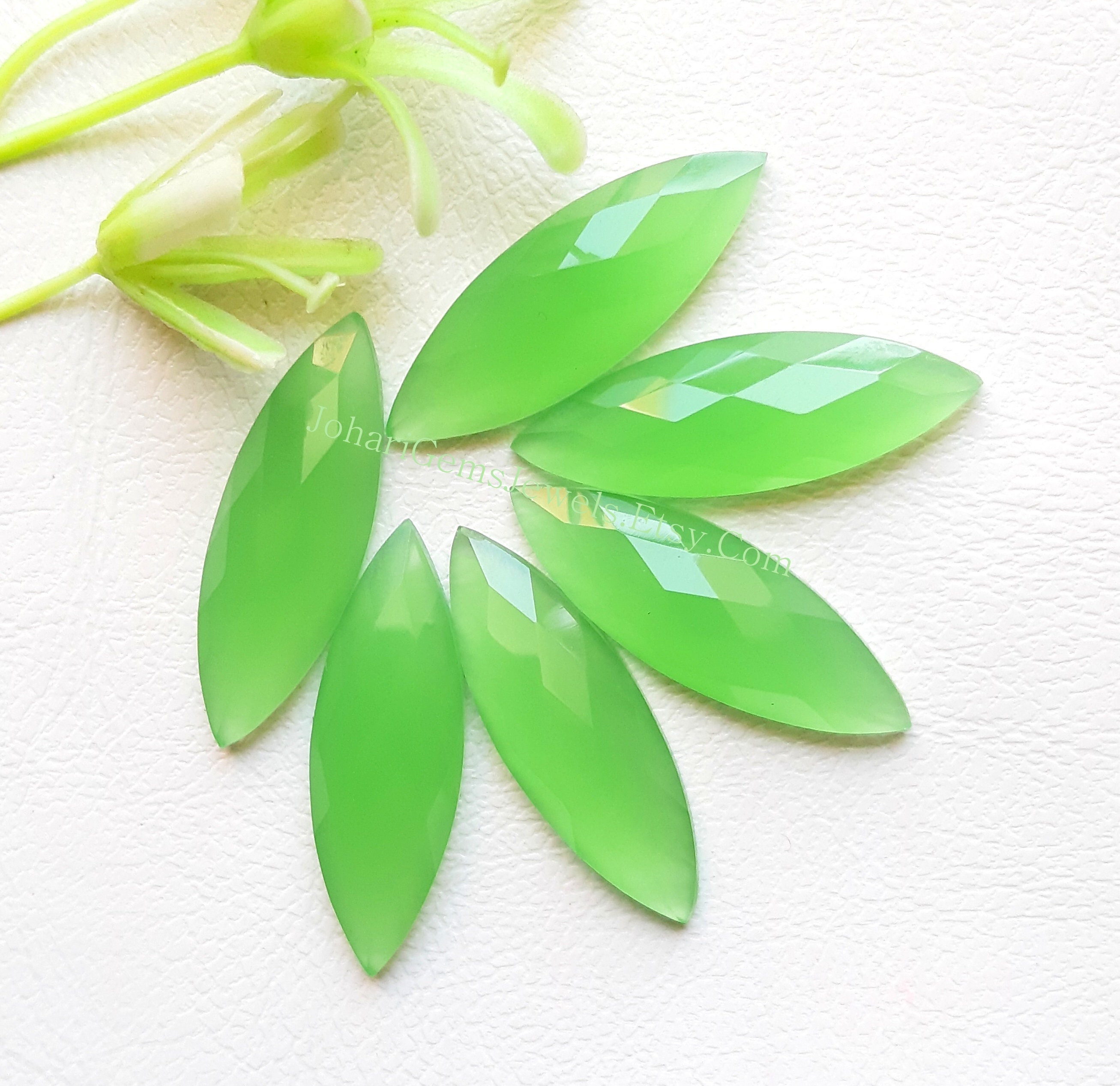 Chrysoprase Onyx Marquise Shape Rose Cut Gemstone 6 Pieces Lot, AAA+ Chrysoprase Onyx With Flat Back For Jewelry Making