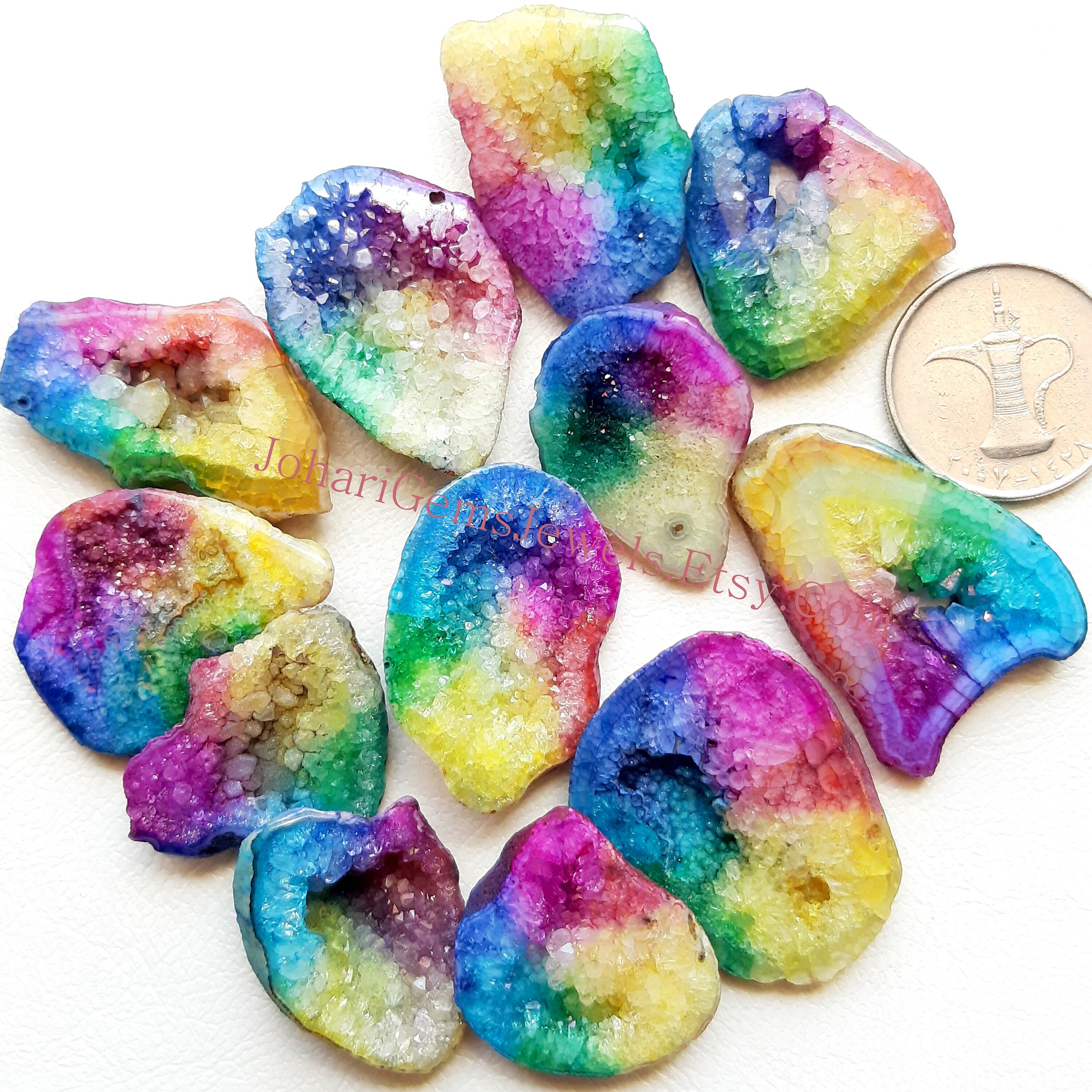 Natural Rainbow Color Solar Quartz Geode, Wholesale Lot Cabochon By Weight With Different Shapes And Sizes Used For Jewelry Making