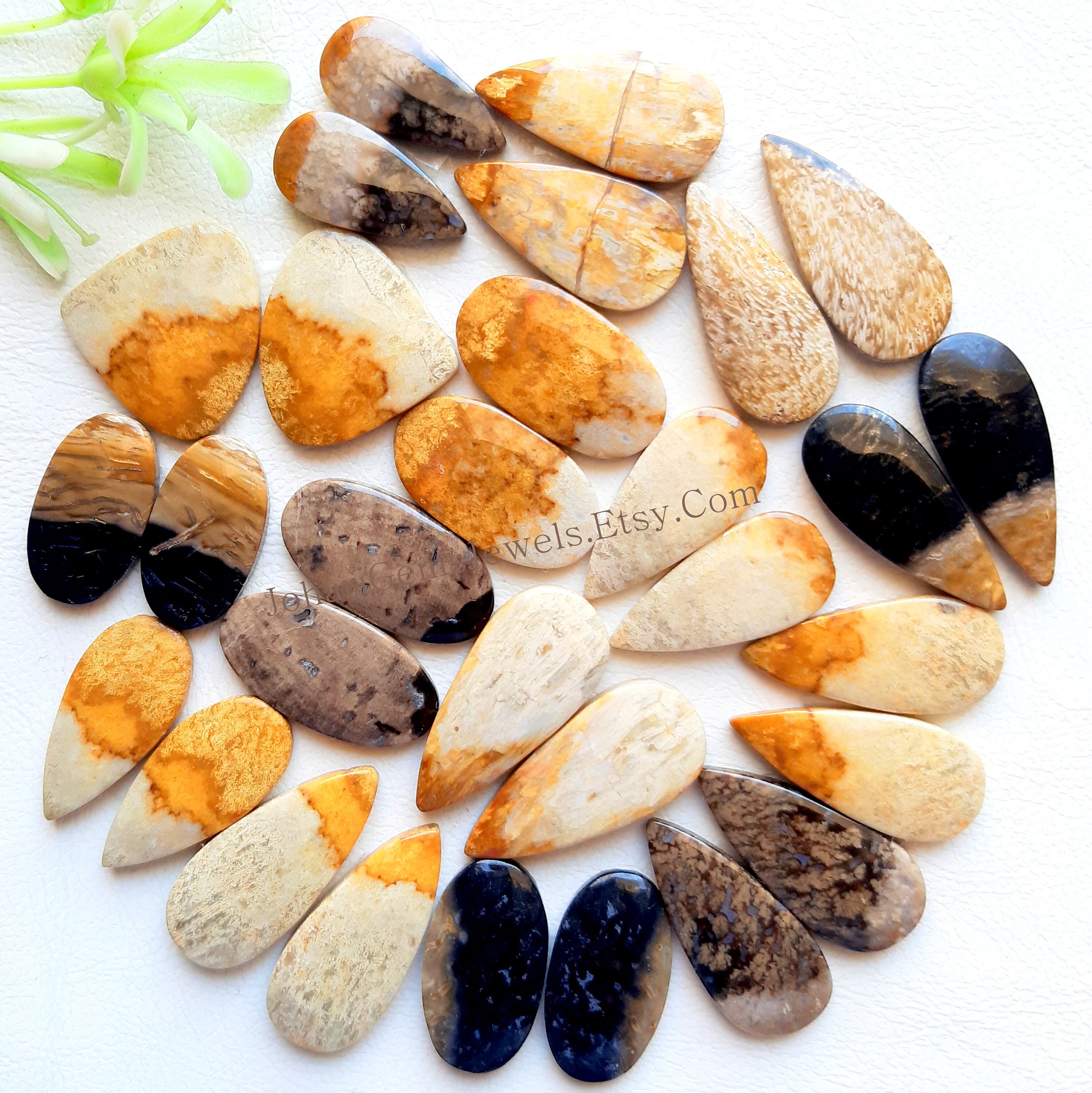 Palm Root Agate Pair Cabochon Wholesale Lot | AAA+ Matched Pair Lot By Quantity With Different Shapes And Sizes Used For Jewelry Making