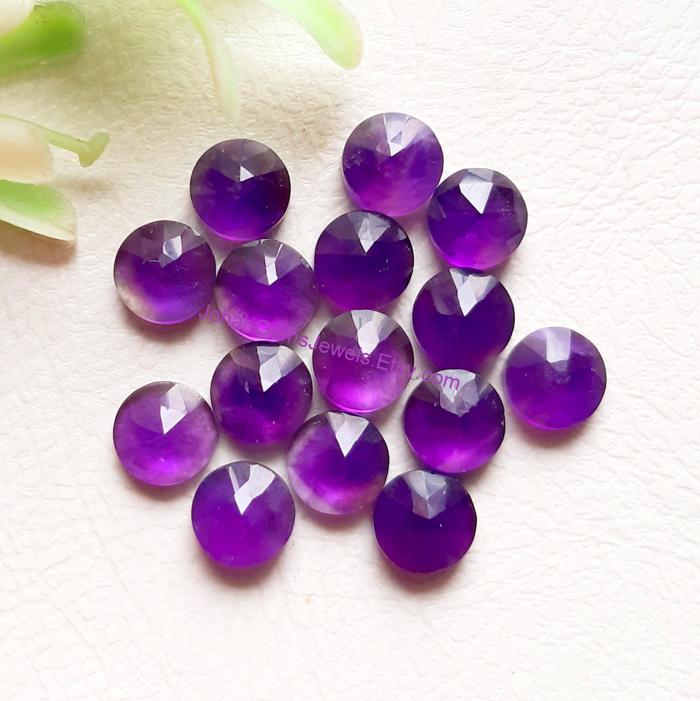 15 Pieces Natural Amethyst 6 MM Rose Cut Round Shape Gemstone Lot, Amethsyt Flat Back Rose Cut Gemstone For Handmade Jewelry