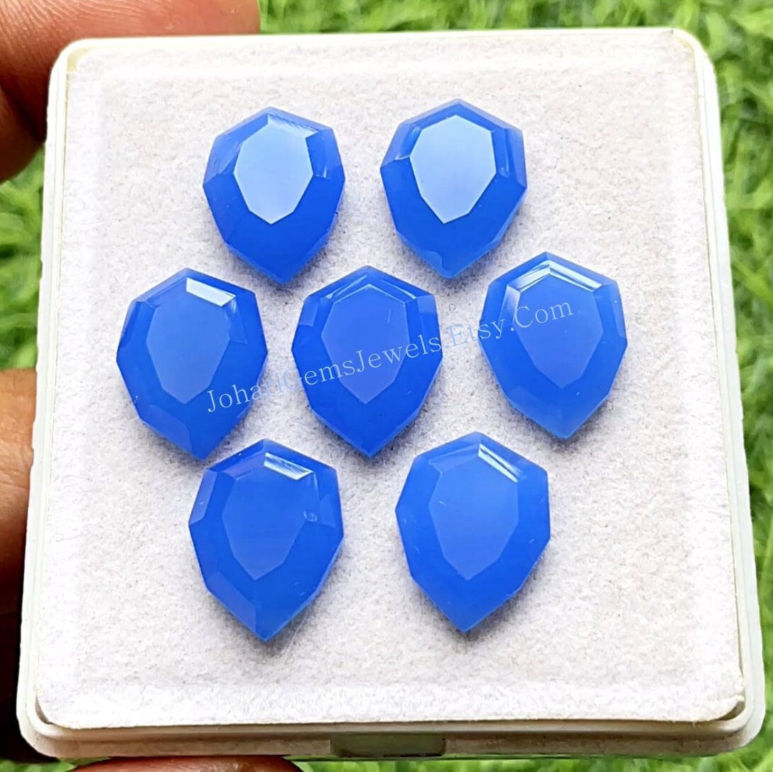 NATURAL Blue Chalcedony Fancy Cut Pear Shape With Flat Back Gemstone 6 Pieces Lot, AAA+ Natural Chalcedony Used For Jewelry Making