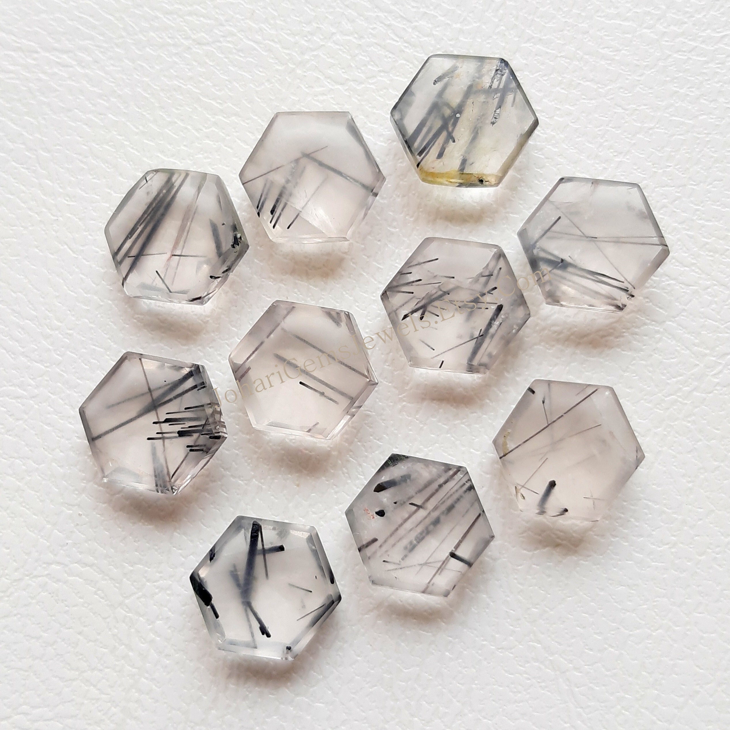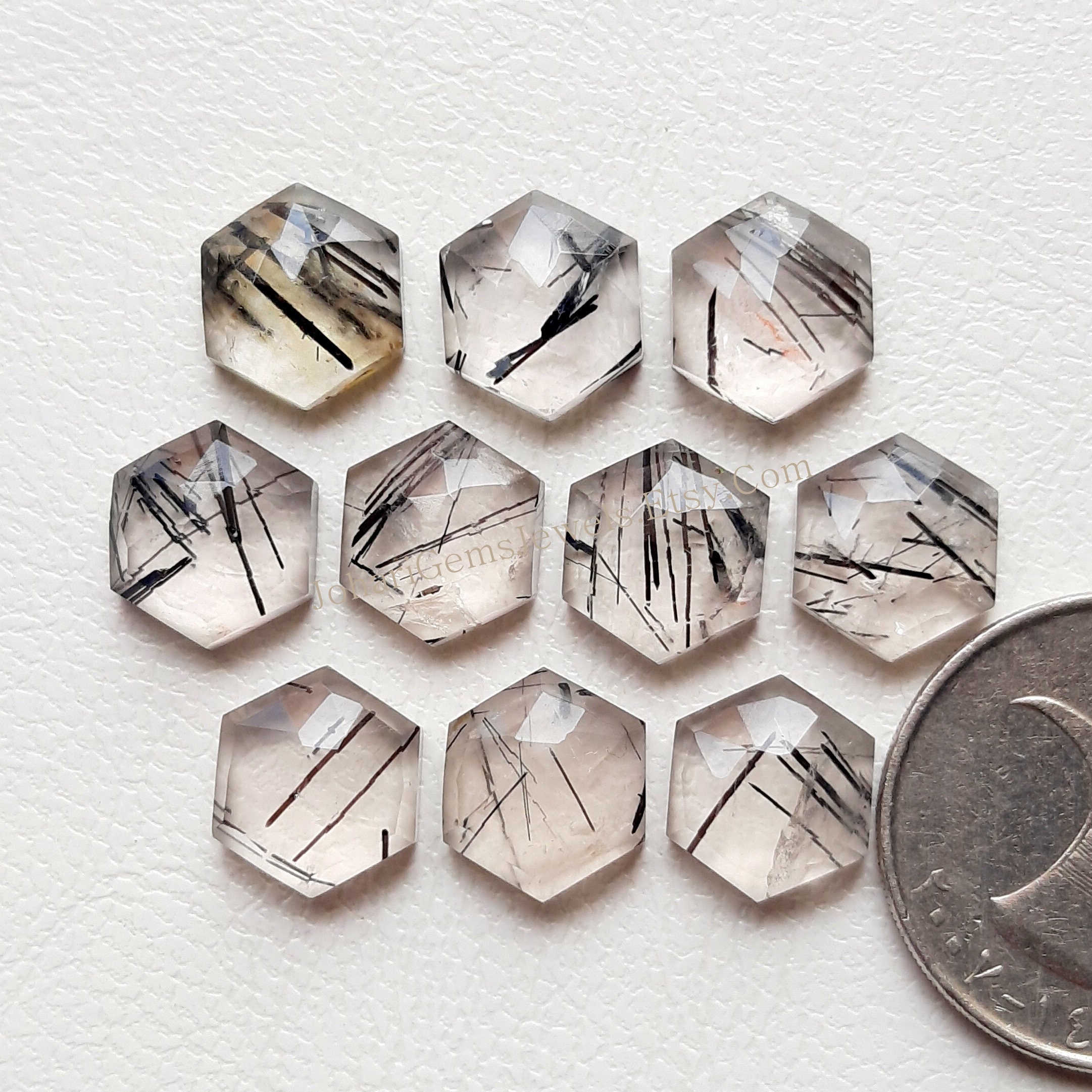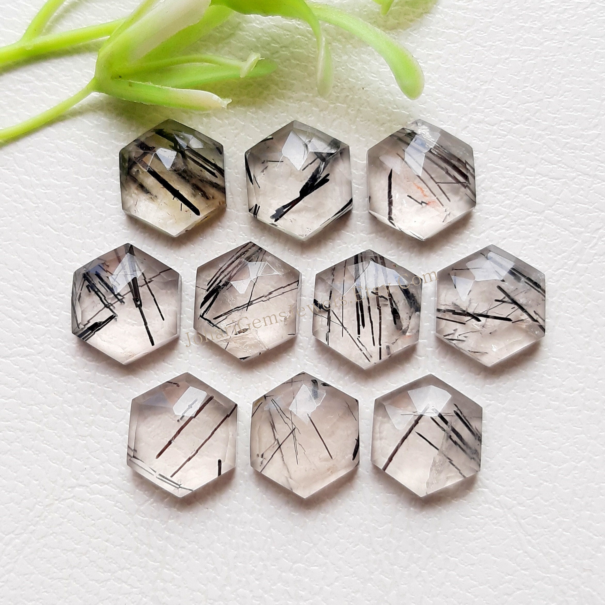 10 Piece Top Quality Black Rutile Quartz 10mm Hexagon Rose Cut Gemstone for Jewelry Making, AAA+ Natural Black Rutile Quartz Rose Cut Gemstone For Handmade Pendant, Necklace, Ring and Handmade Jewelry