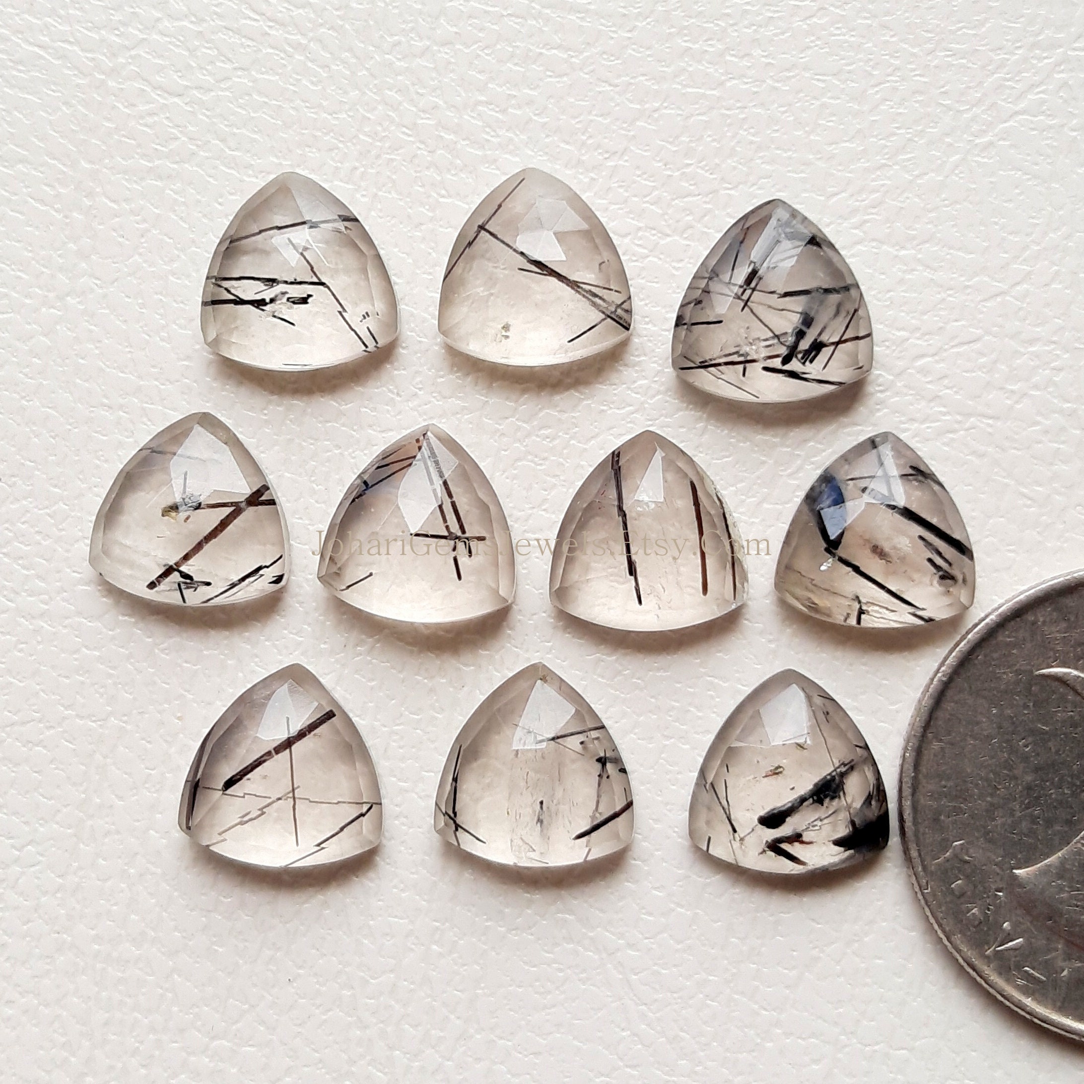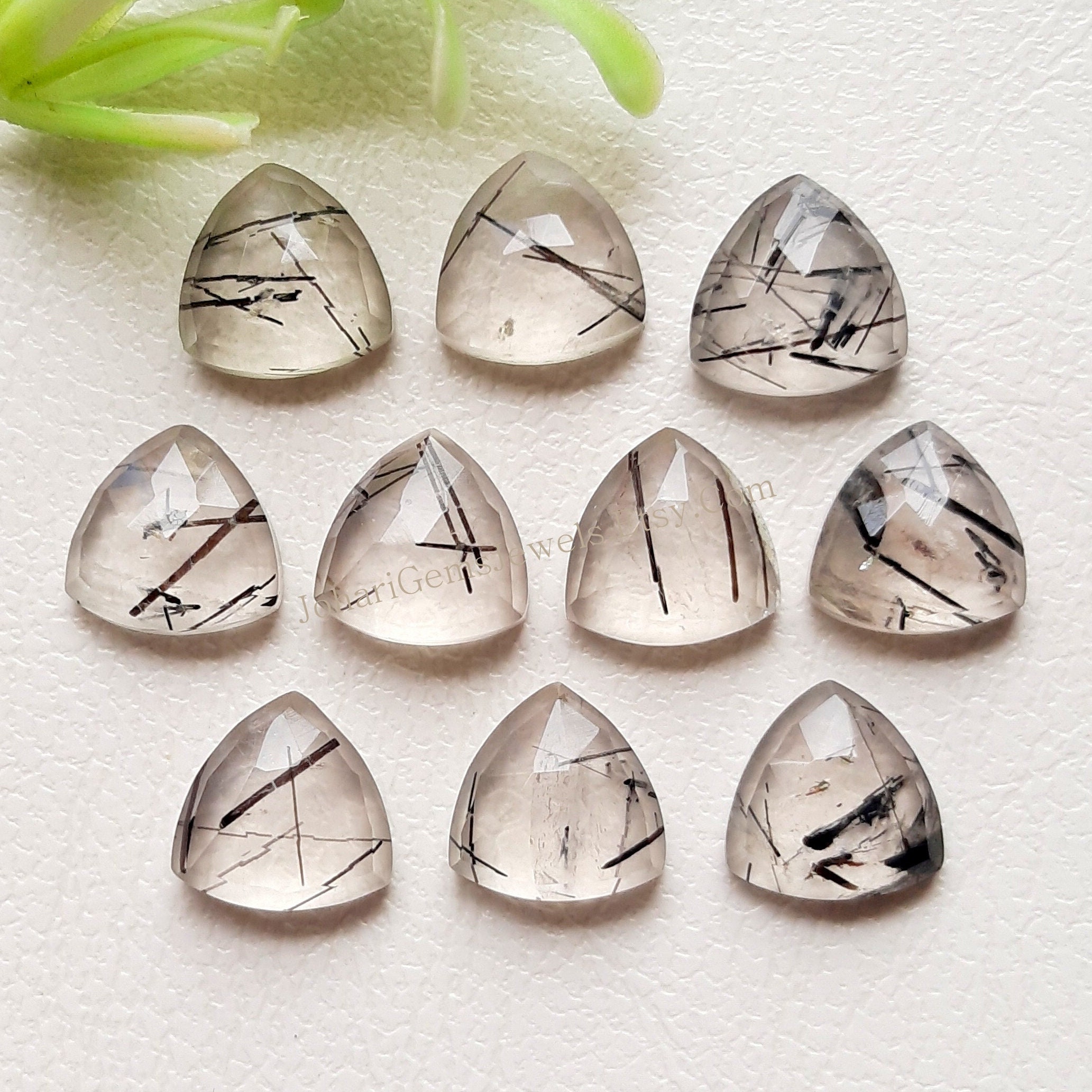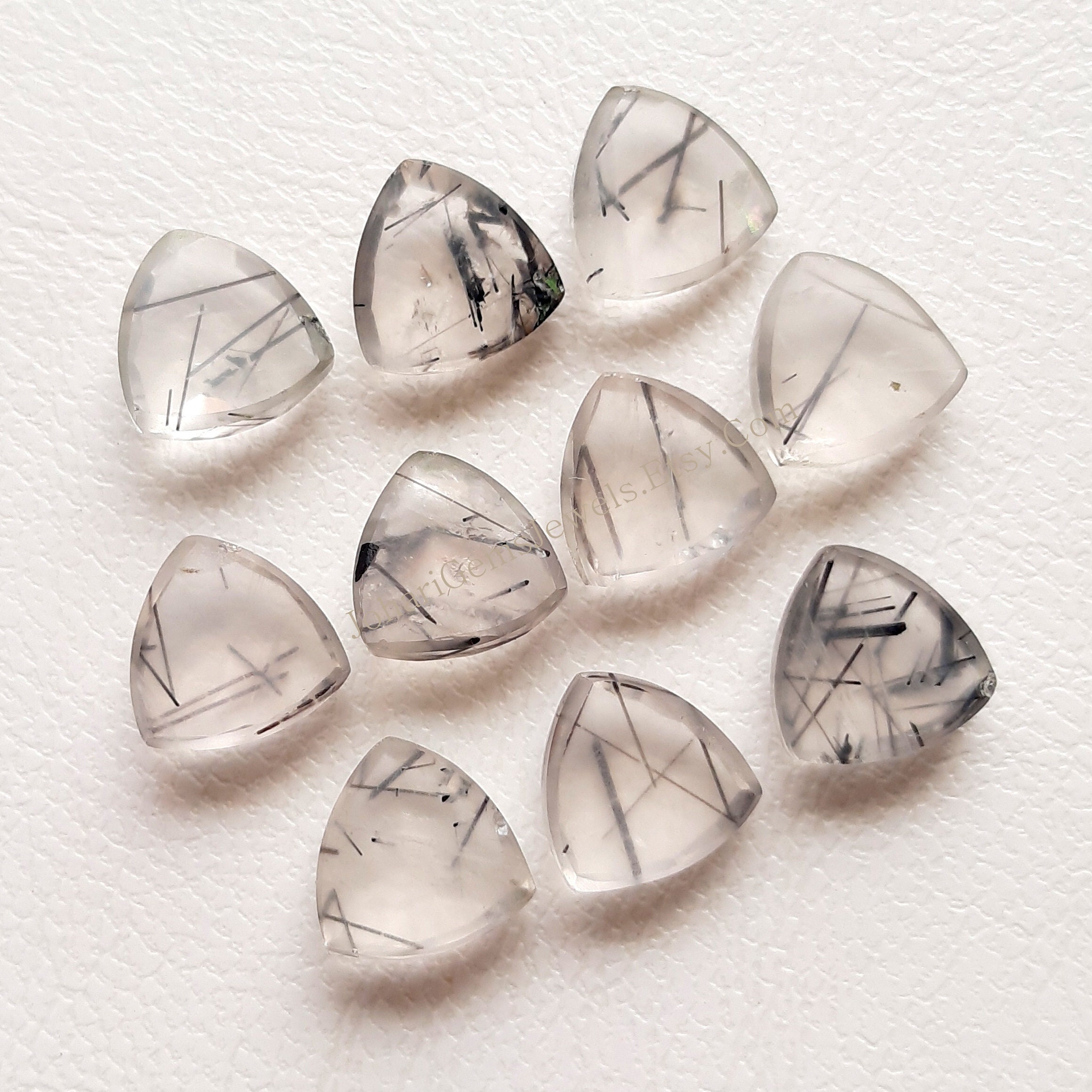 10 Piece Top Quality Black Rutile Quartz 10mm Trillion Rose Cut Gemstone for Jewelry Making, AAA+ Natural Black Rutile Quartz Rose Cut Gemstone For Handmade Pendant, Necklace, Ring and Handmade Jewelry
