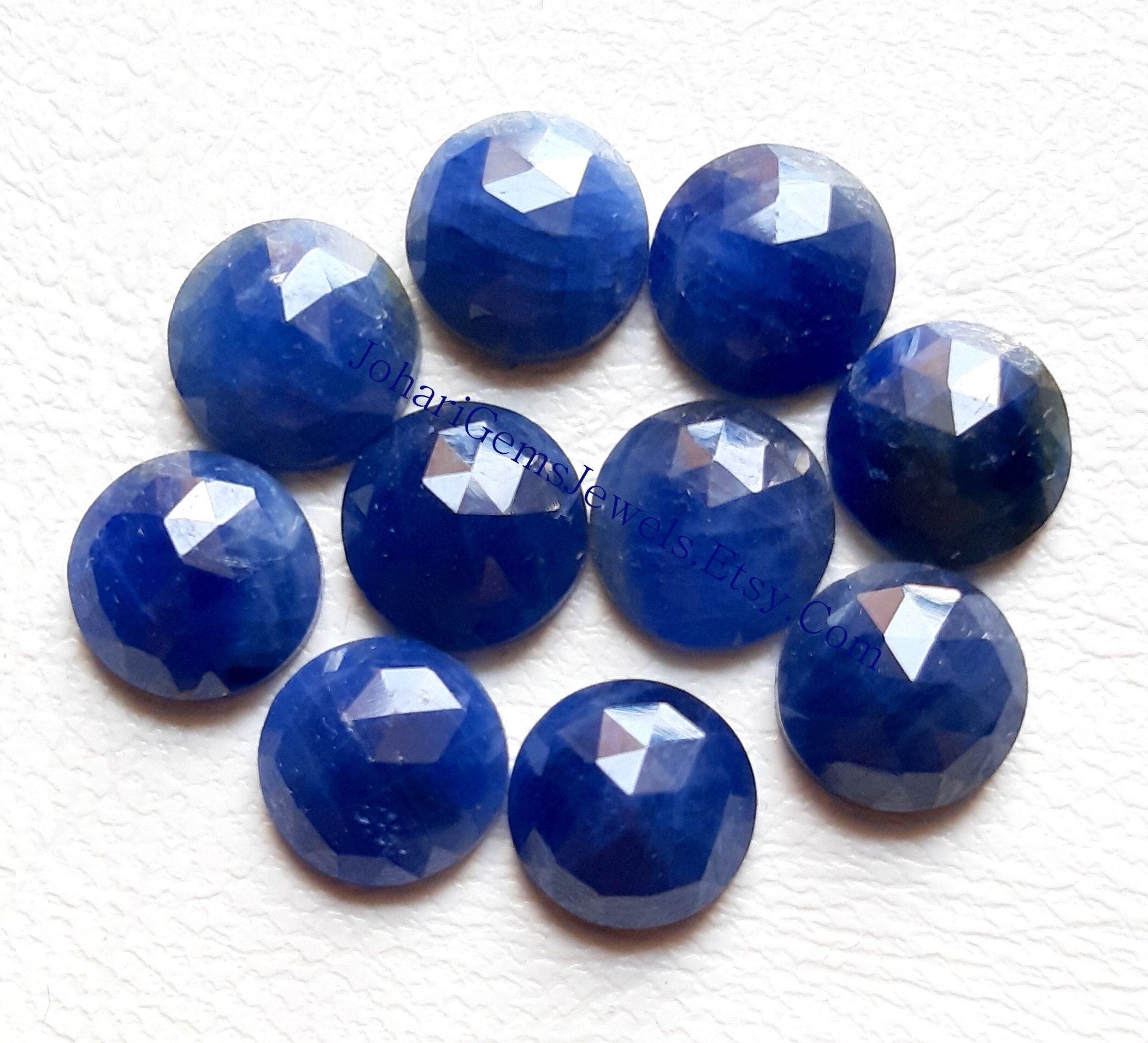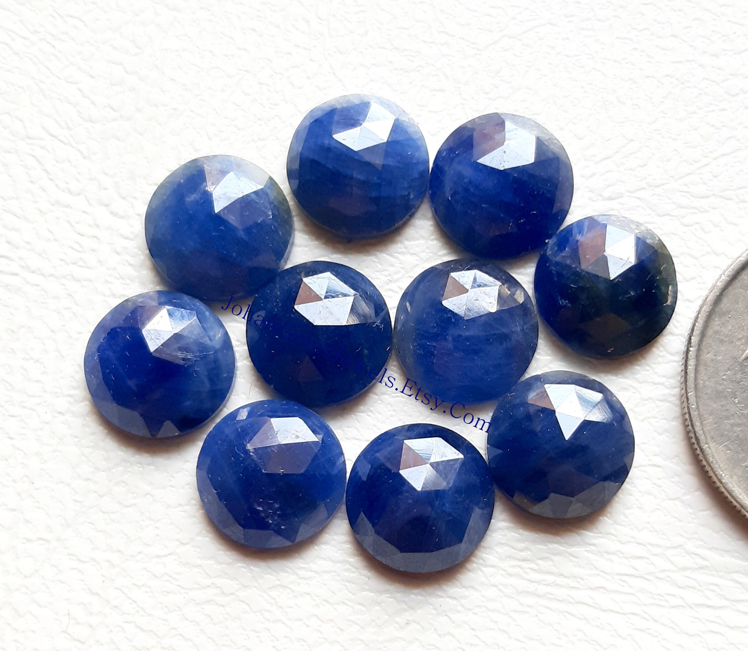 NATURAL BLUE SAPPHIRE Rose Cut Gemstone 10 Pieces Lot | Size : 10 MM | 100% Natural Top Quality Blue Sapphire With Flat Back For Jewelry Making