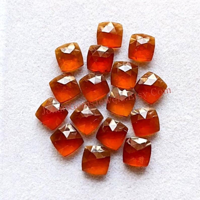 Natural Hessonite Garnet Rose Cut 6 MM Cushion Shape With Flat Back Gemstone 15 Pieces Lot, AAA+ Natural Hessonite Garnet Used For Jewelry Making