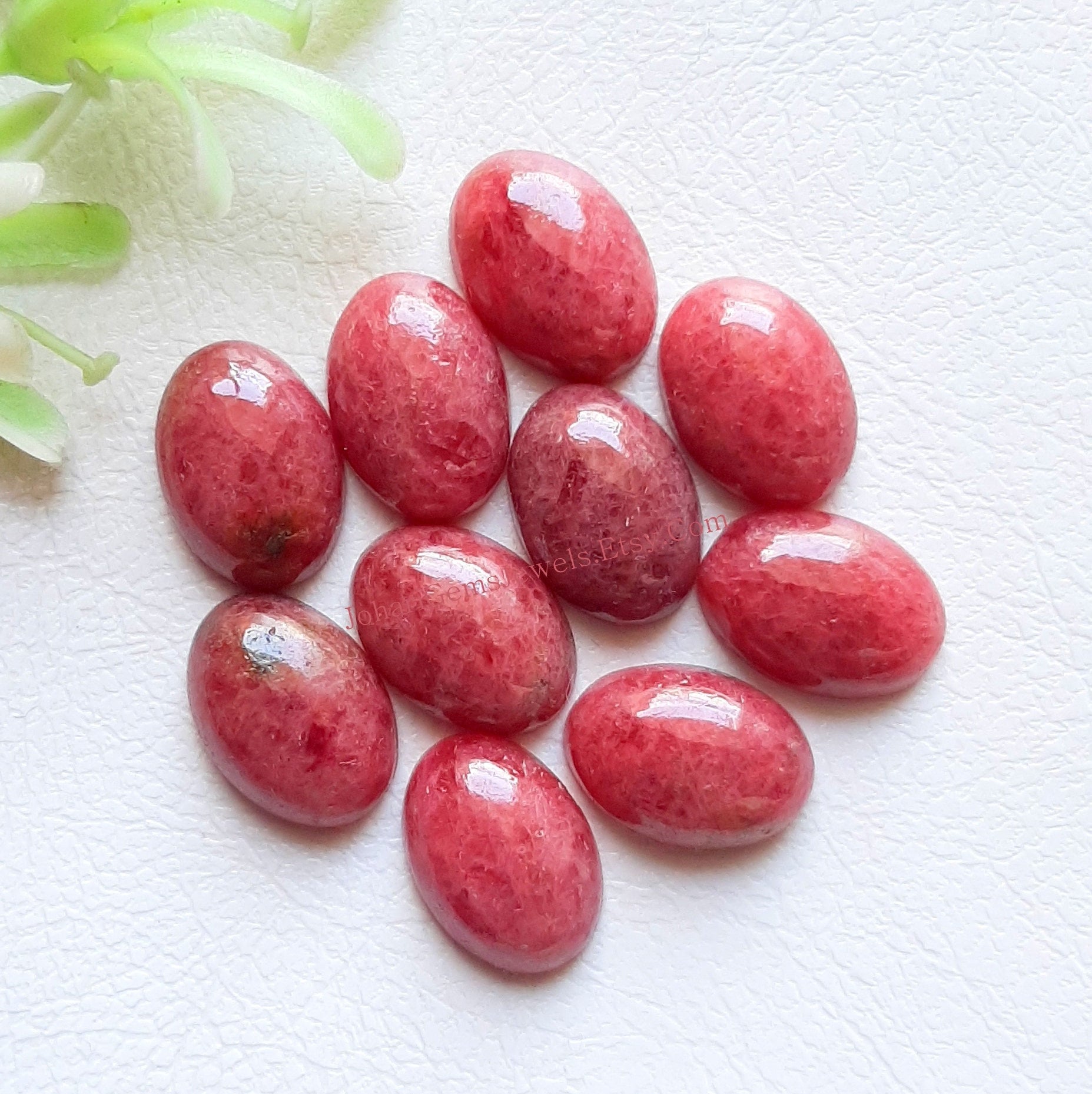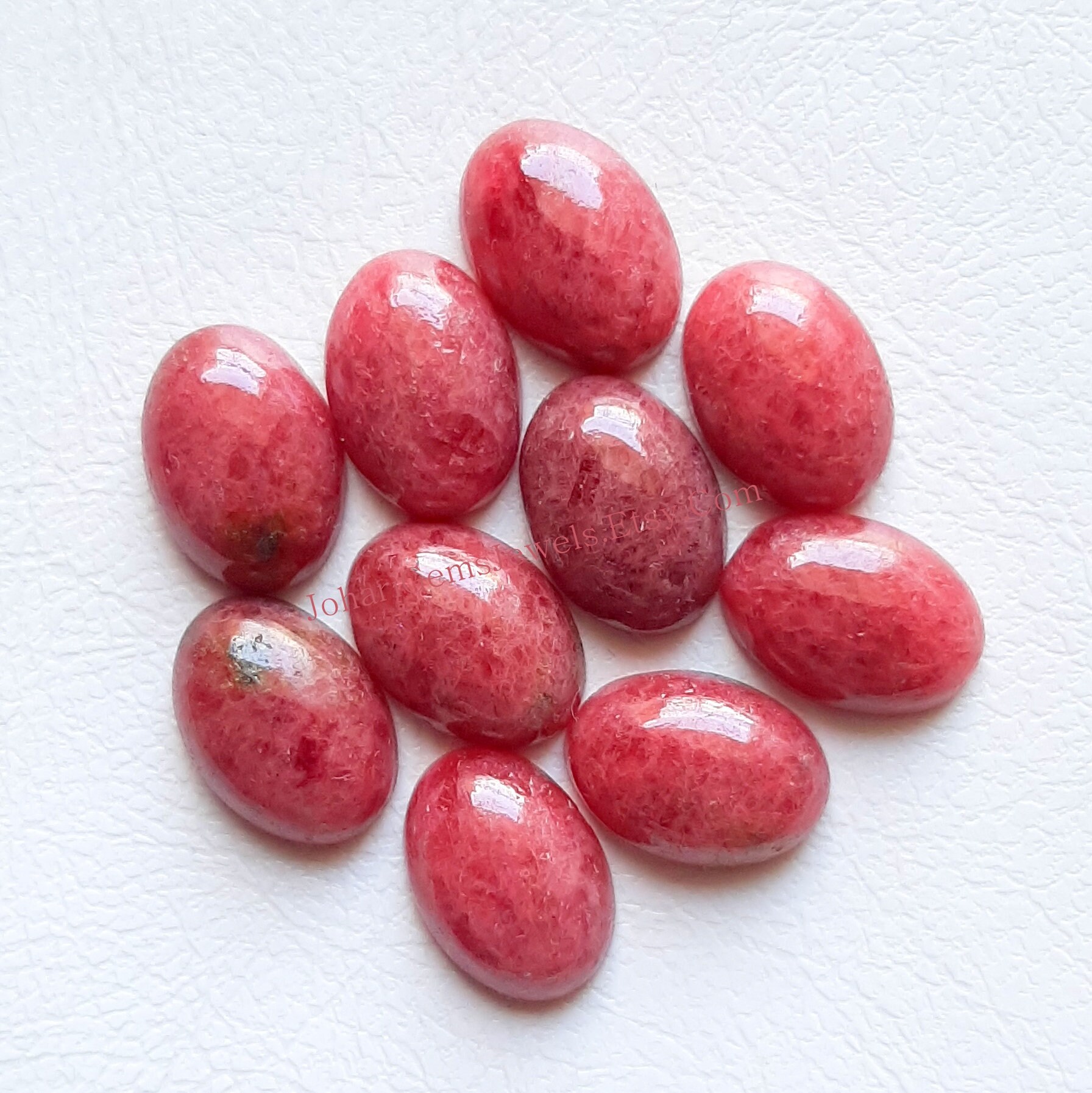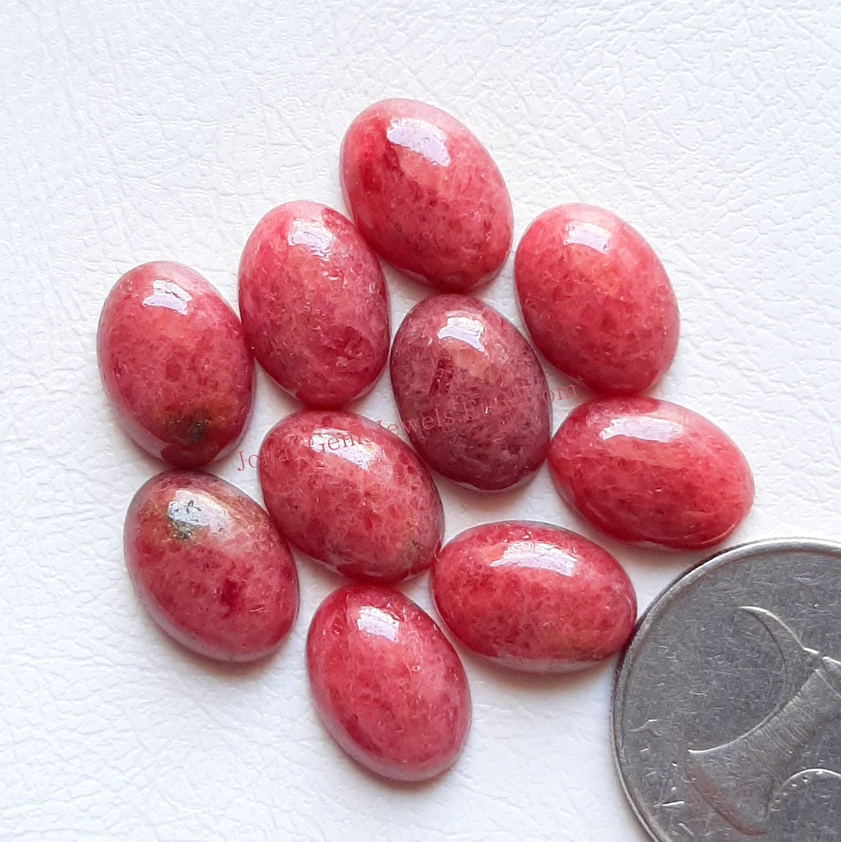 10 Pieces Calibrated AAA+ Natural Rhodonite Cabochon Gemstone Lot With Flat Back For Handmade Jewelry