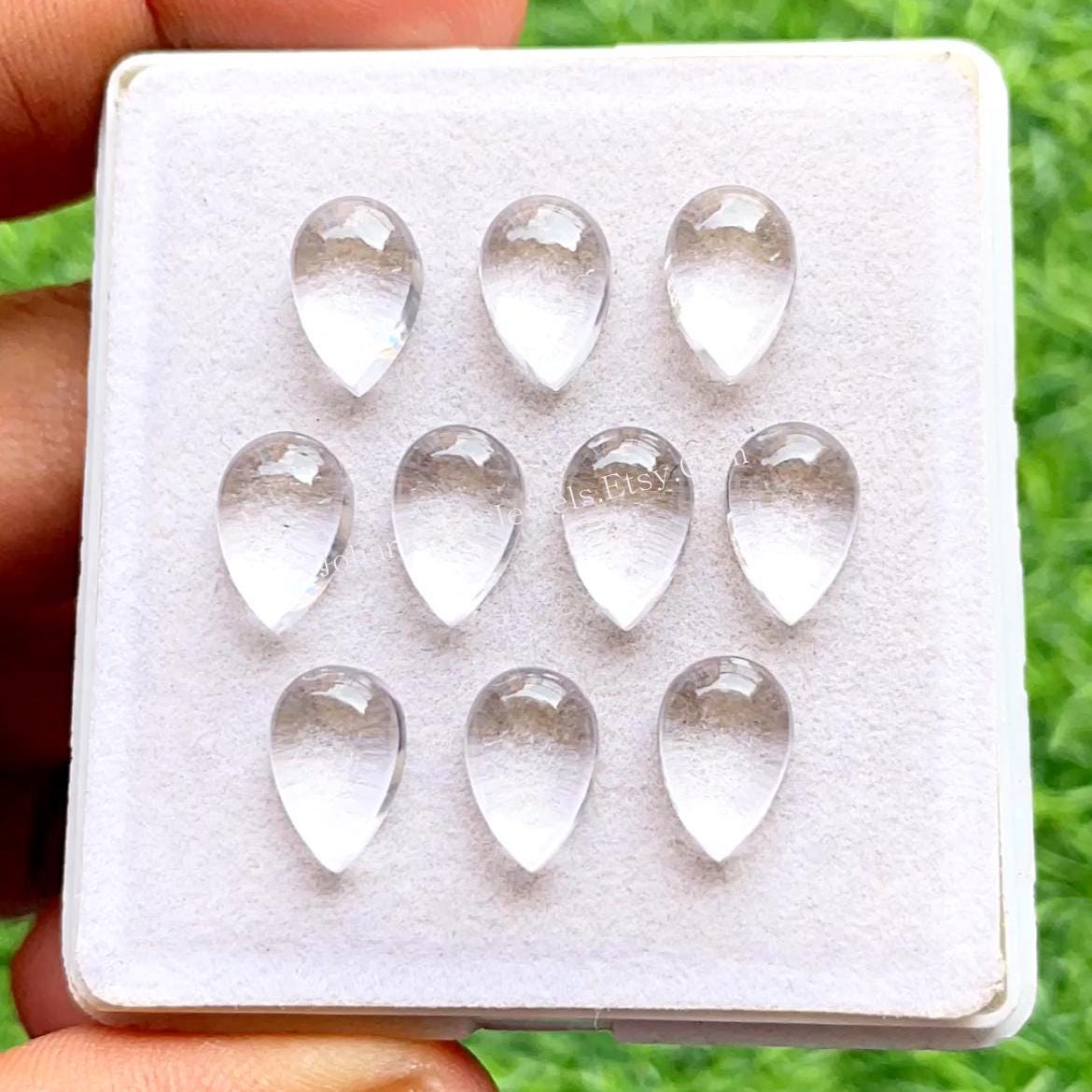 NATURAL Clear Quartz 8X12 MM Smooth Cabochon Pear Shape With Flat Back Gemstone 10 Pieces Lot, AAA+ Natural Clear Quartz Used For Jewelry Making