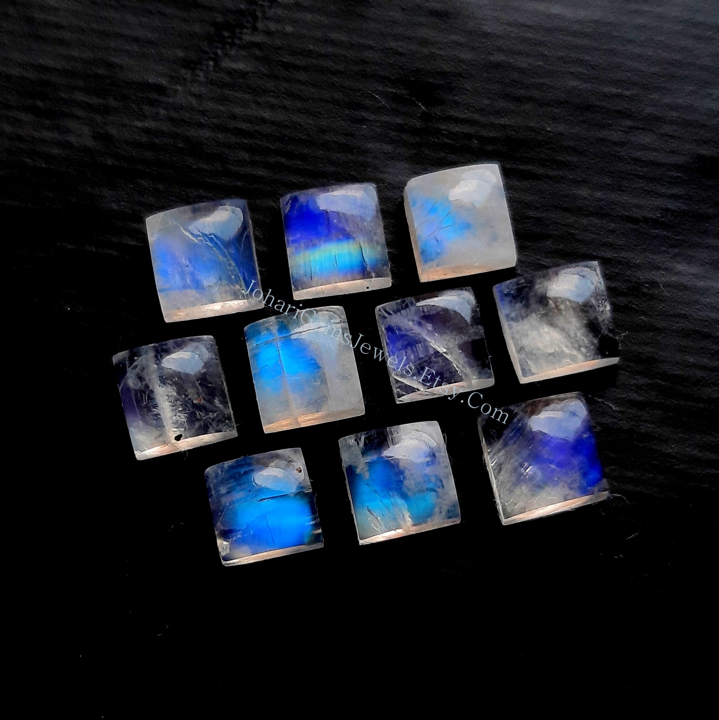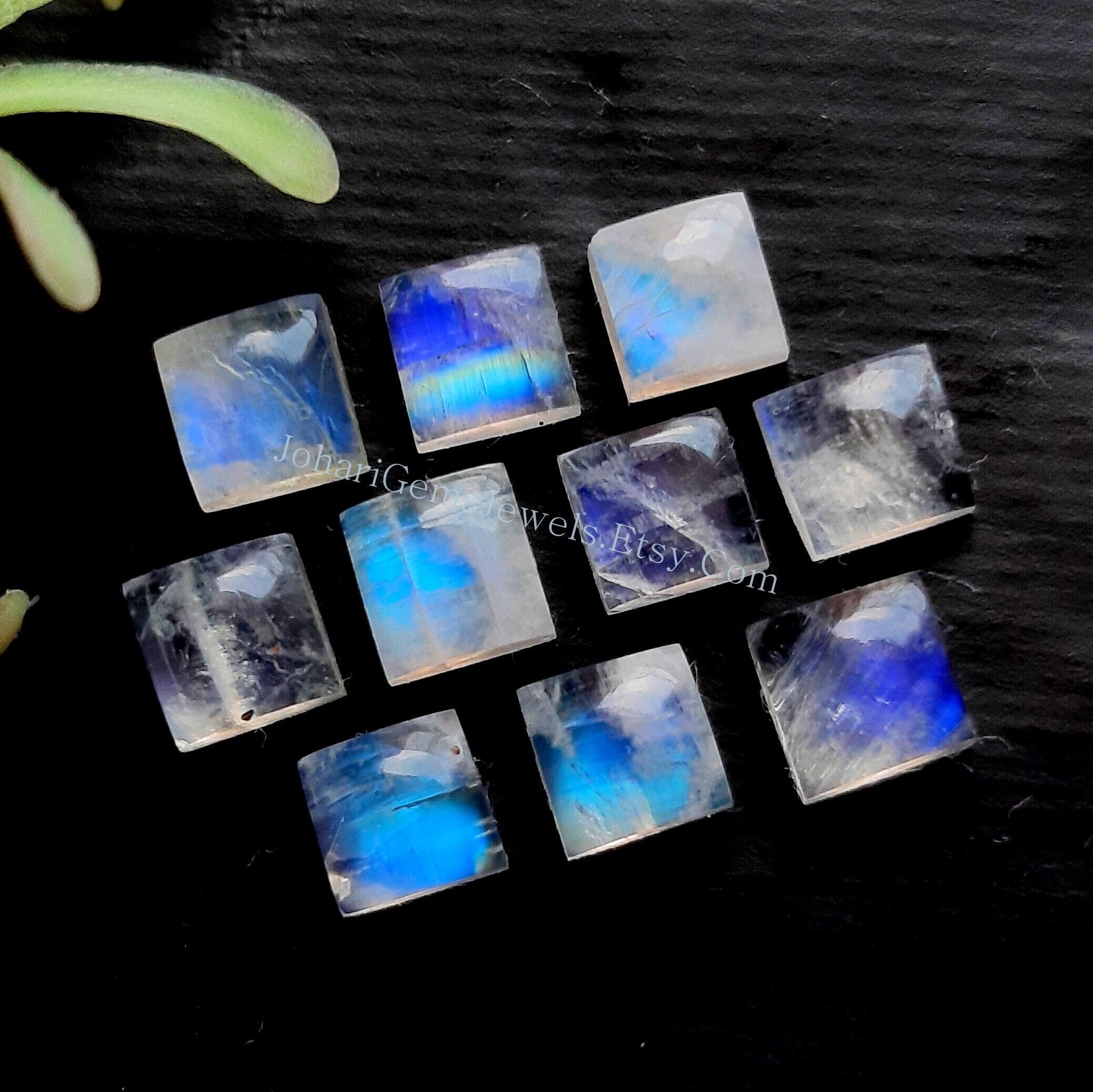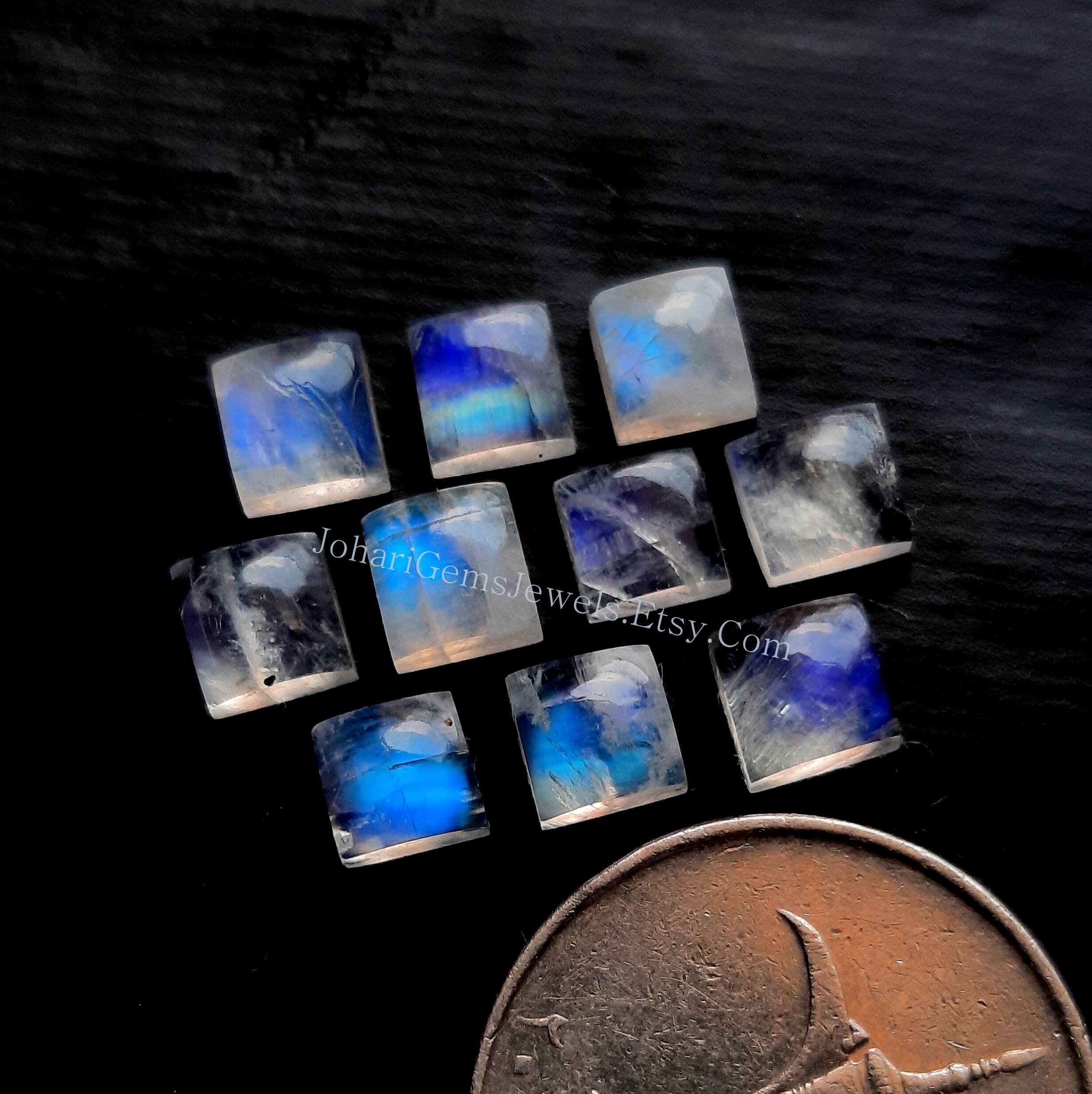 Rainbow Moonstone Cabochon 6 MM Square Gemstone 10 Pieces Lot | AAA+ Natural Rainbow Moonstone Square With Flat Back For Jewelry Making