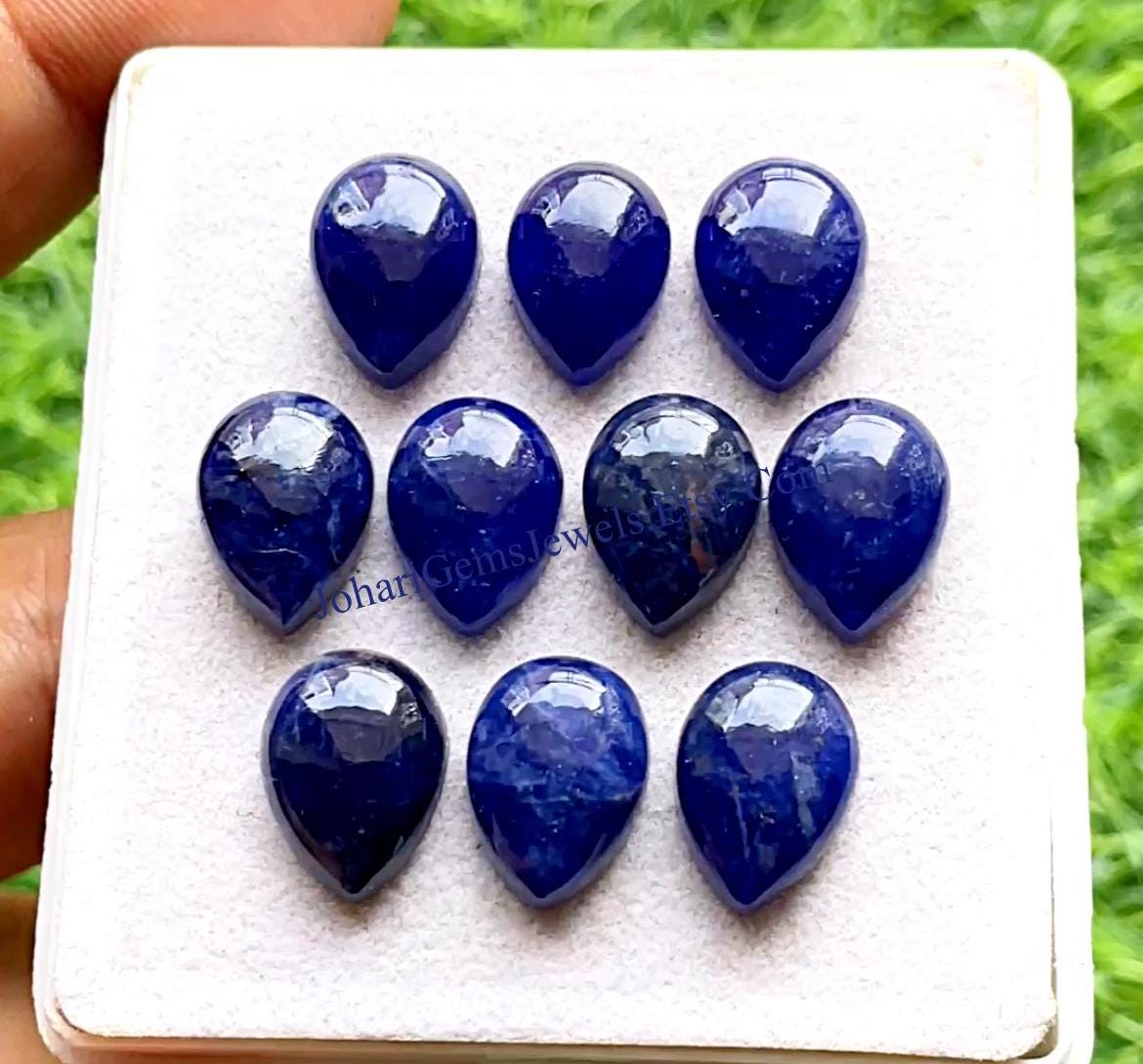 NATURAL SODALITE 10X14 MM Pear Shape Smooth Cabochon Gemstone 10 Pieces Lot, AAA+ Natural Sodalite Pear With Flat Back For Handmade Jewelry
