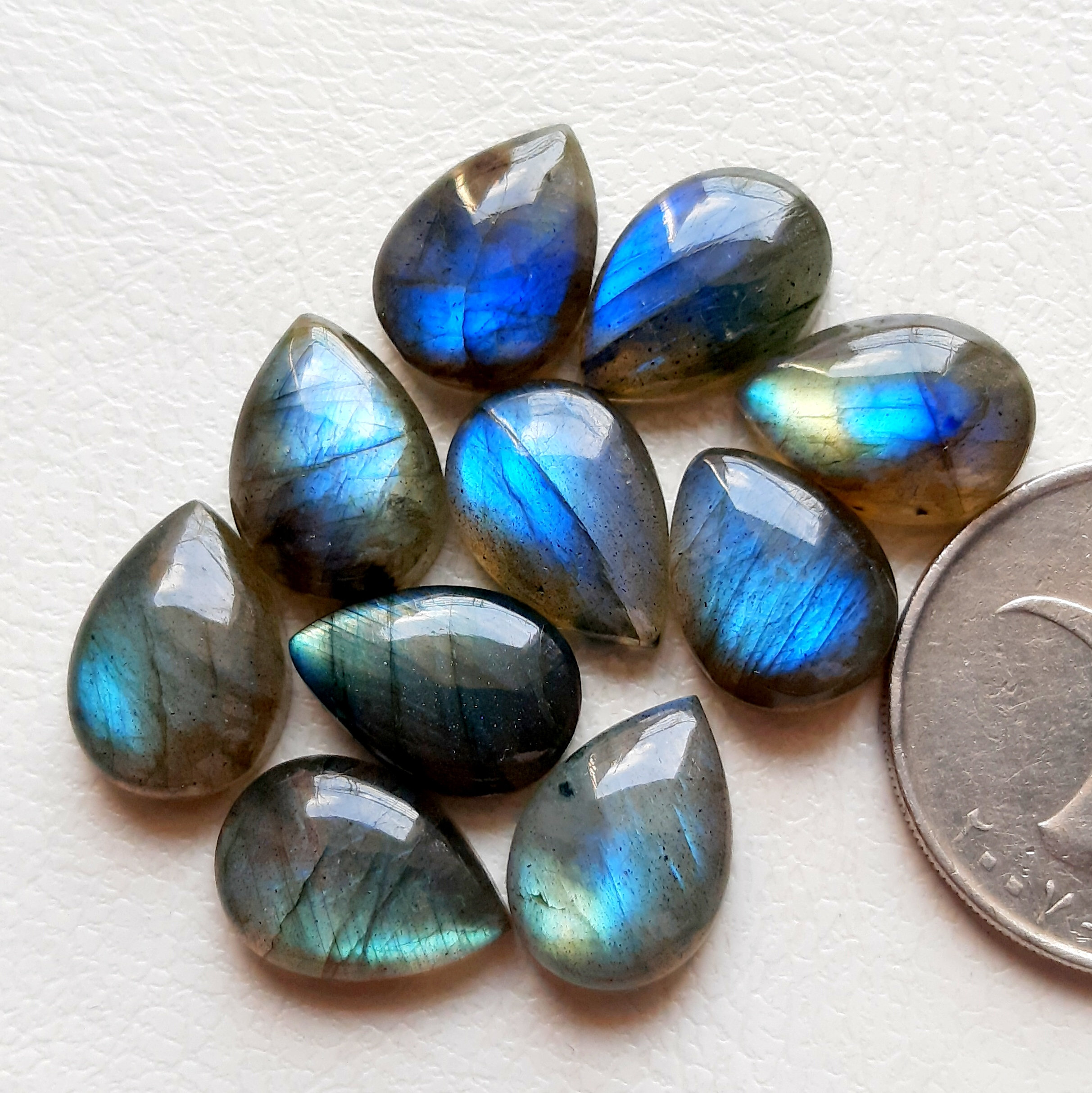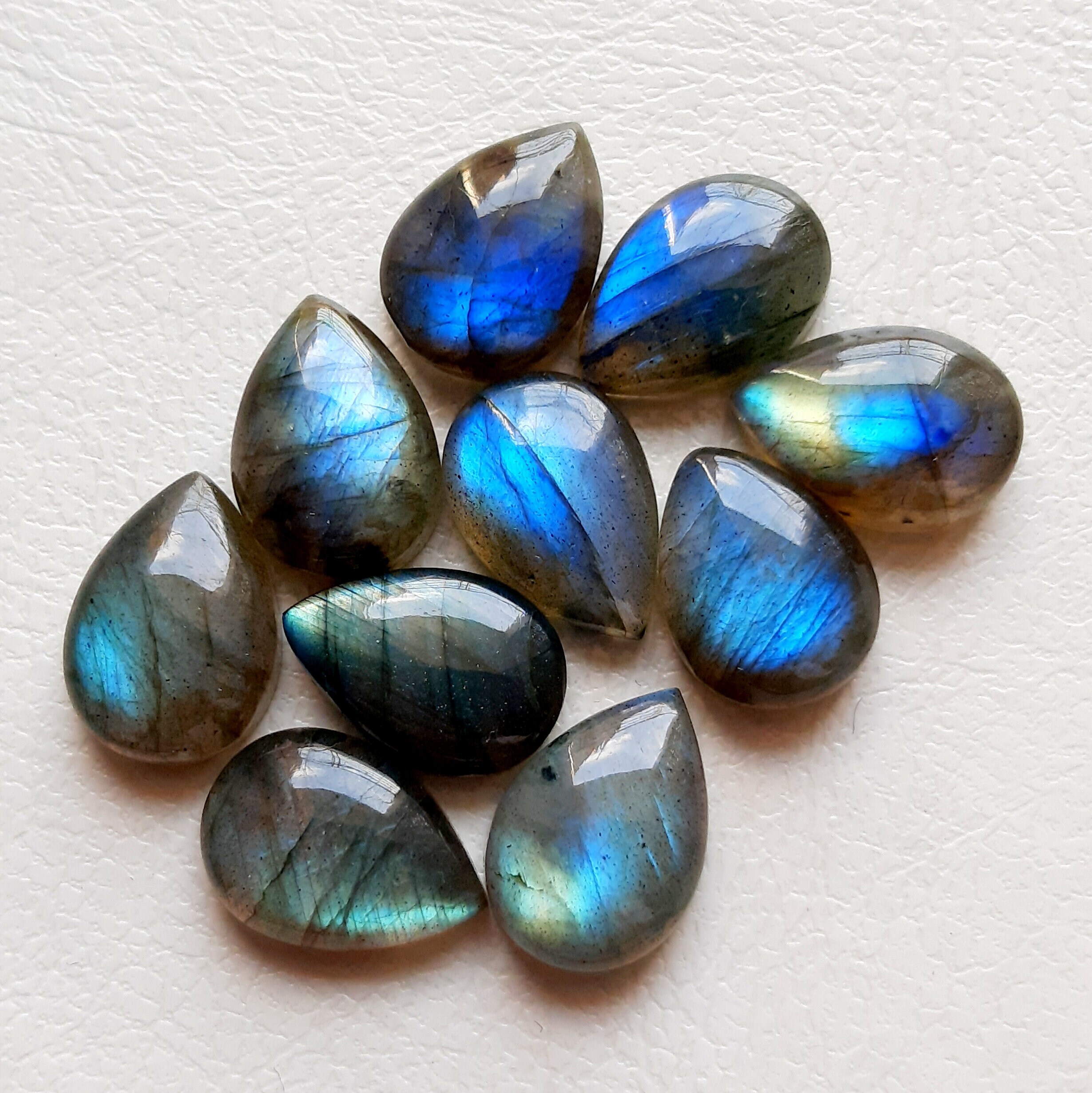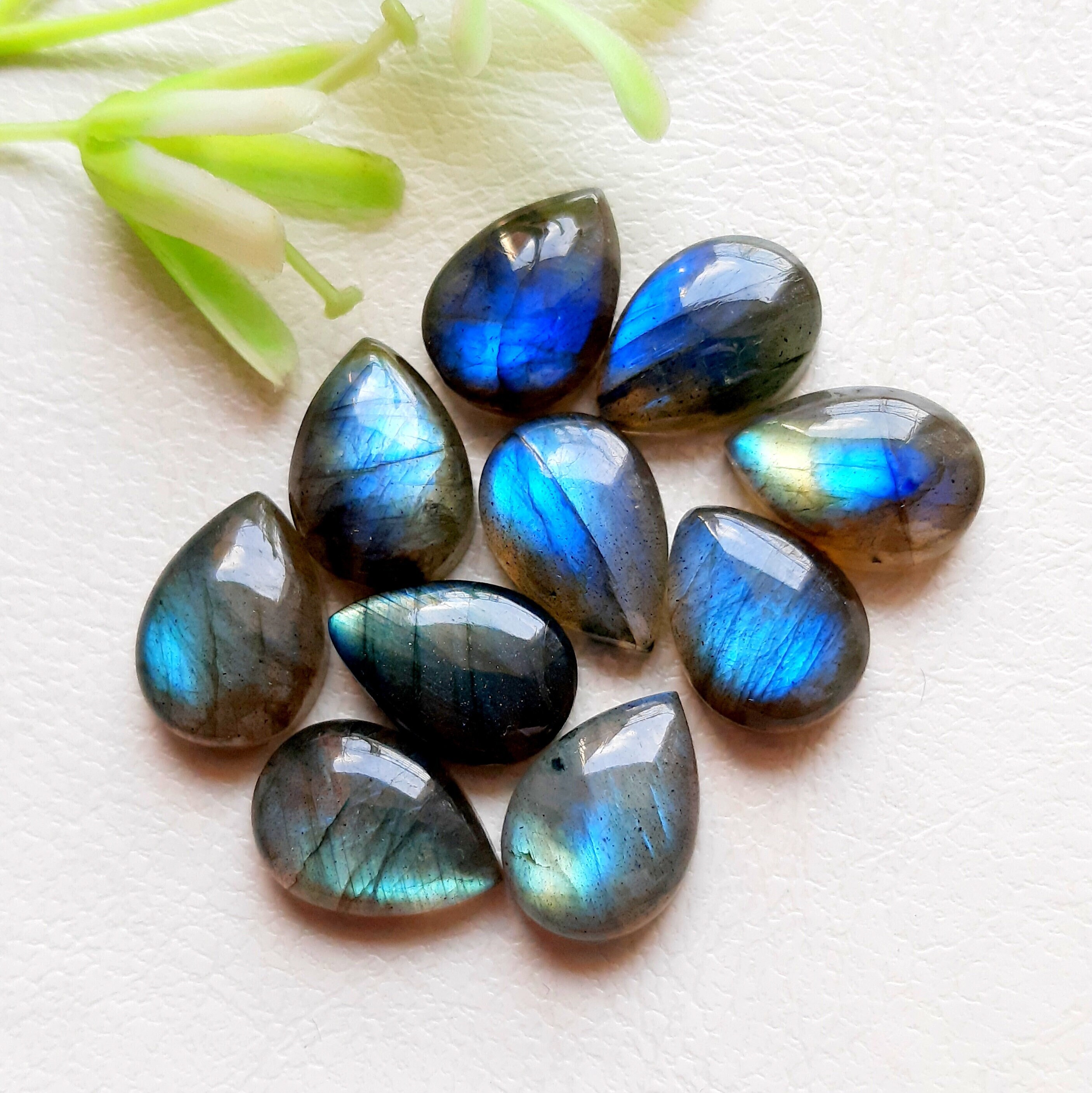 Labradorite Calibrated Pear Cabochon Gemstone 10 Pieces Lot, Natural AAA+ Labradorite Cabochon Used For Handmade Jewelry