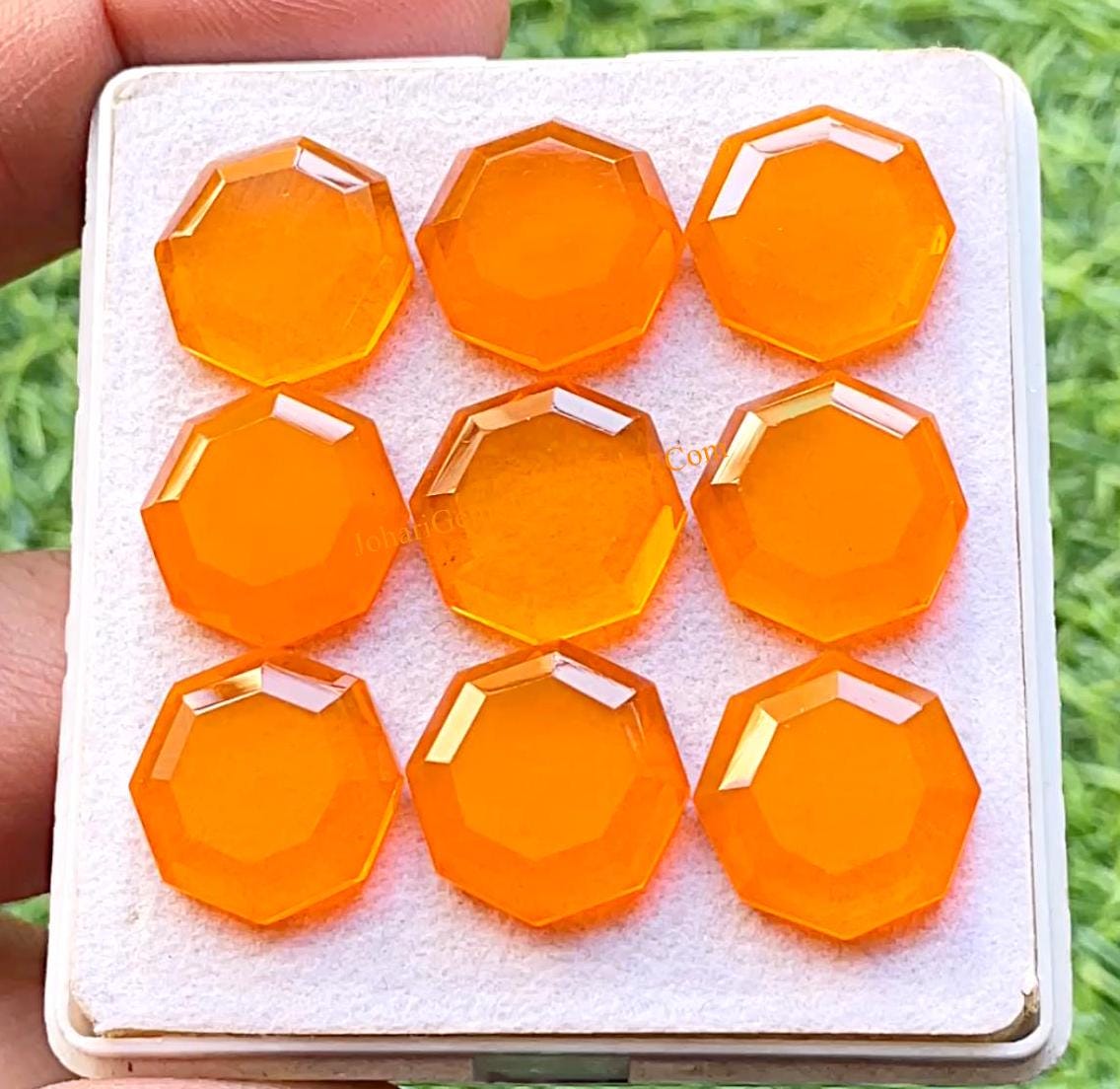 Orange Quartz 15 MM Fancy Cut Octagon Shape With Flat Back Gemstone 6 Pieces Lot, AAA+ Natural Orange Quartz Gemstone For Jewelry Making