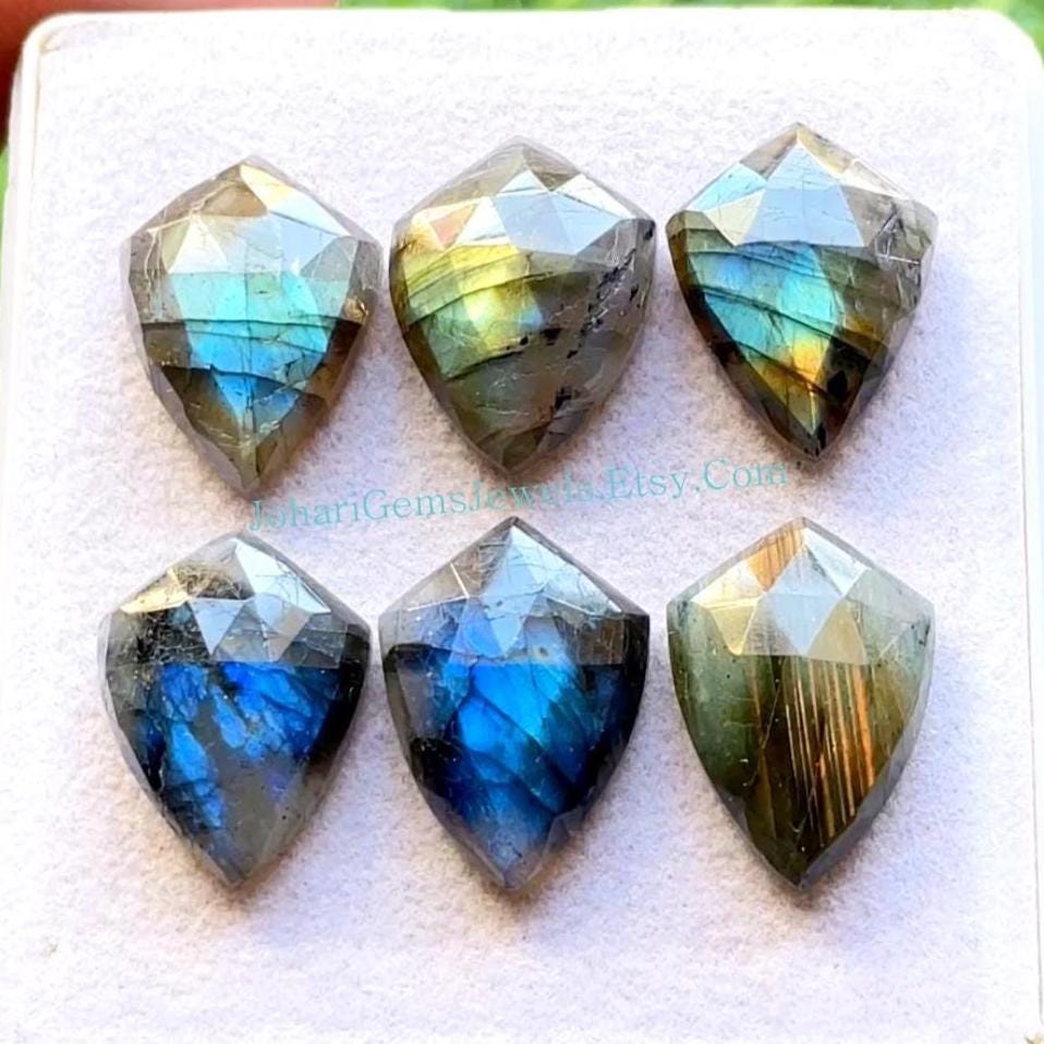 Natural Labradorite Fancy Shield Shape Rose Cut With Flat Back Gemstone 6 Pieces Lot, AAA+ Natural Labradorite Used For Jewelry Making