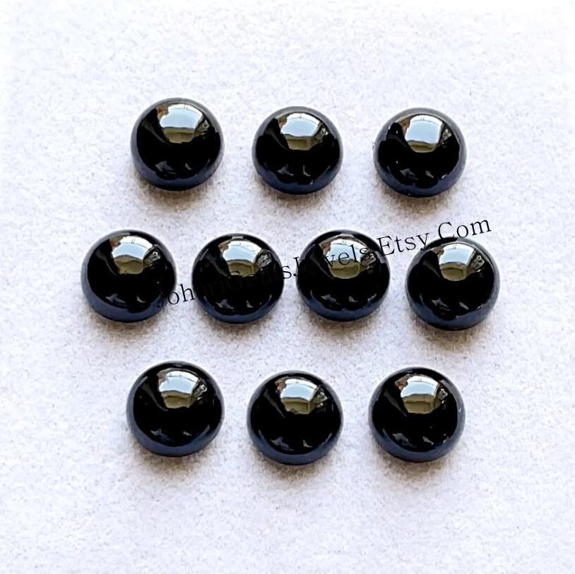 Black Chalcedony 8 MM Round Shape Smooth Cabochon Gemstone 10 Pieces Lot, AAA+ Natural Chalcedony With Flat Back For Jewelry Making