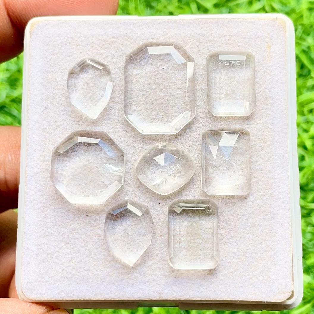 NATURAL Clear Quartz Fancy Cut Mix Shape With Flat Back Gemstone 8 Pieces Lot, Natural Clear Quartz With Inclusion Used For Jewelry Making