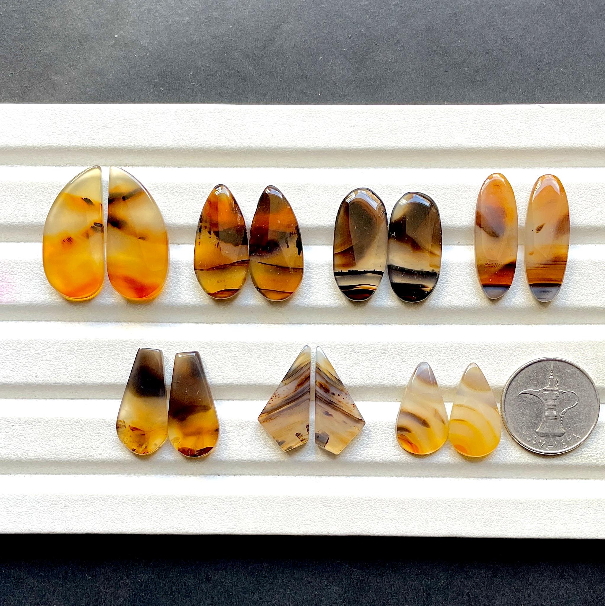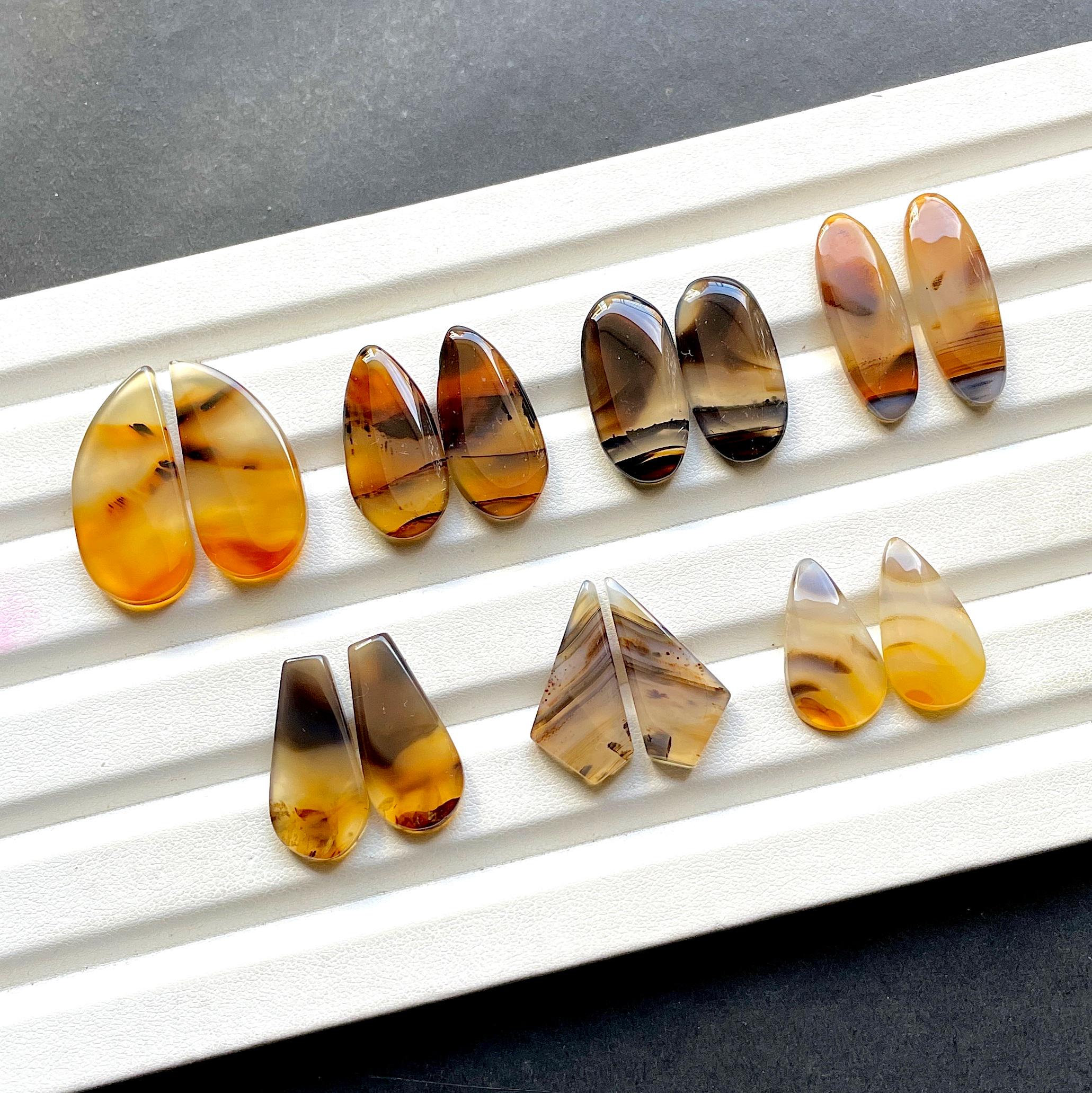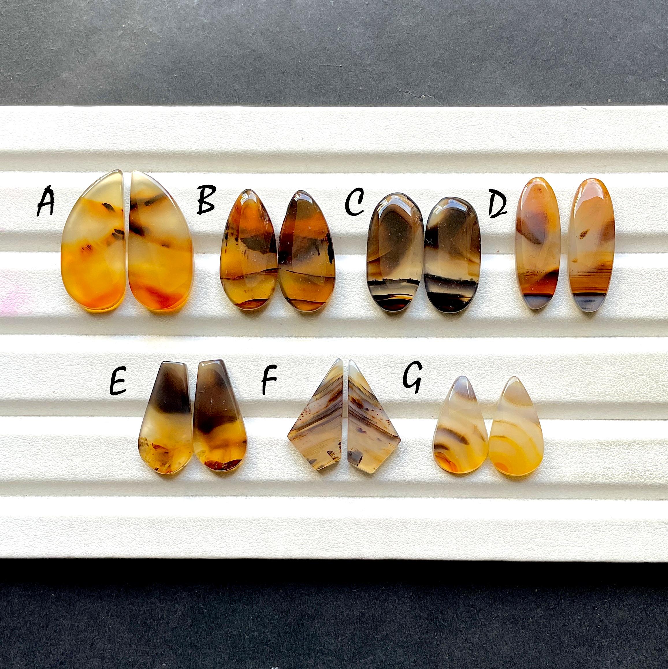 NEW Yellowstone River Montana Agate Pair Cabochon Gemstone For Jewelry Making, AAA+ Montana Agate Cabochon Pair For Earrings