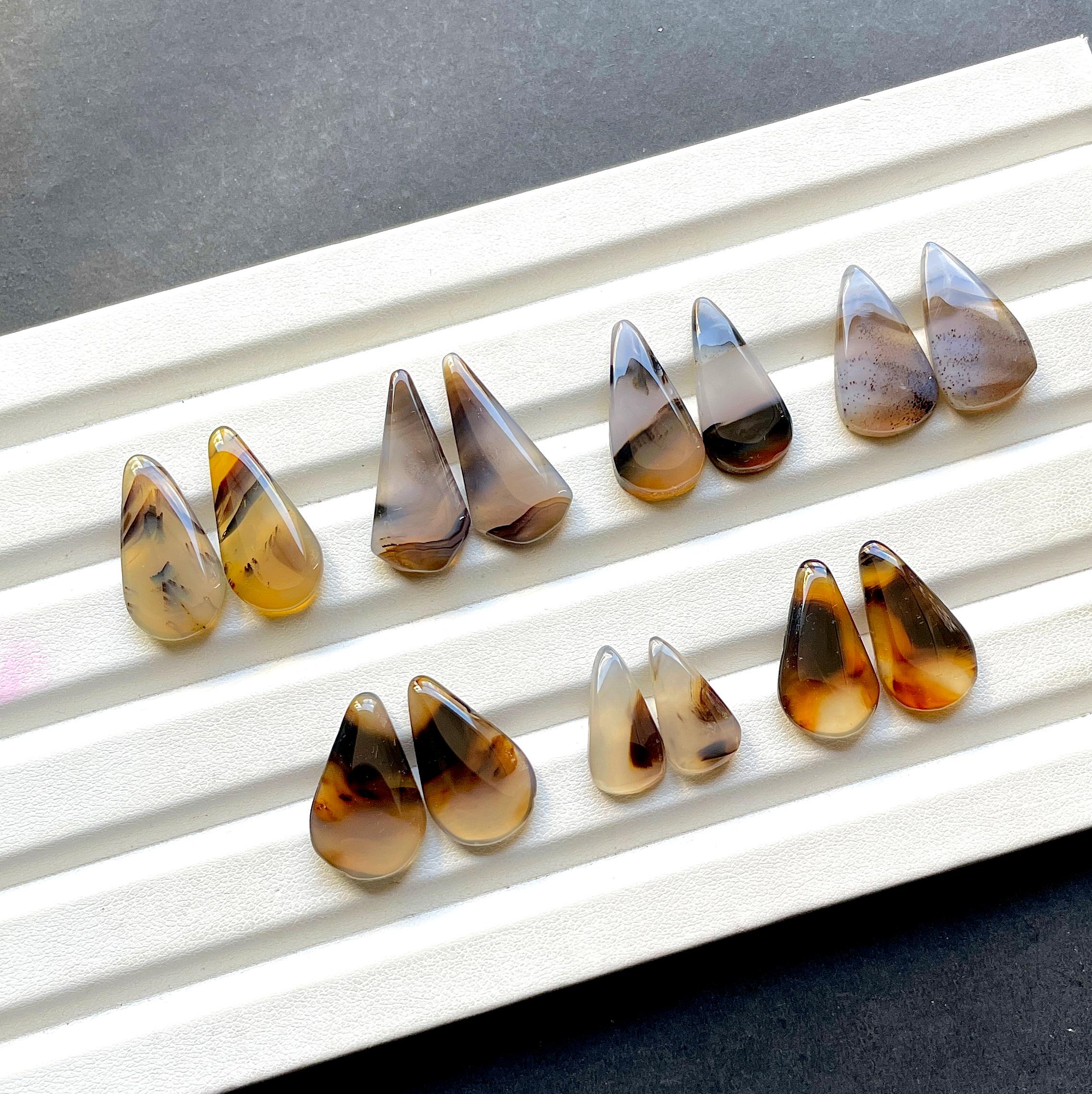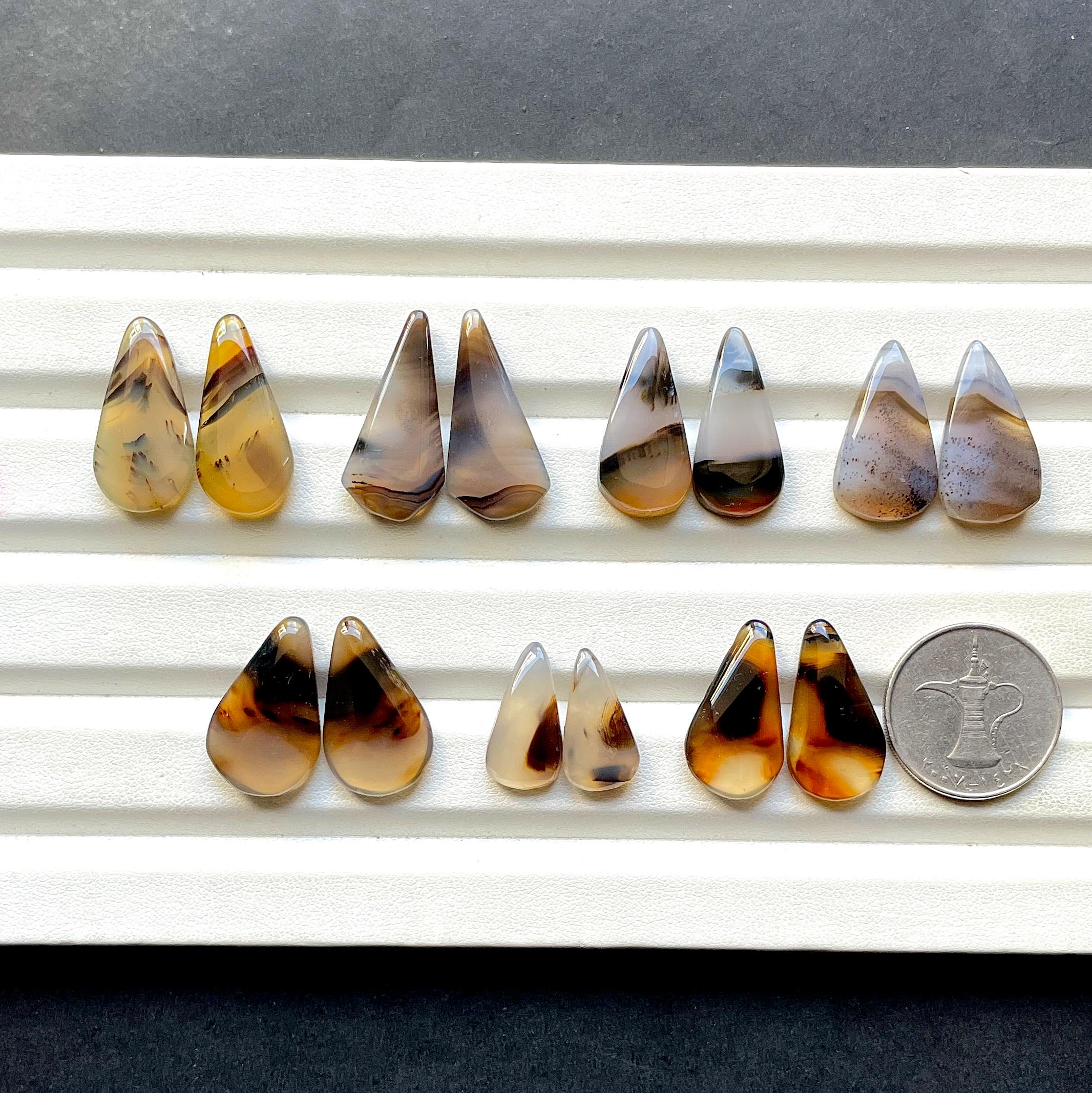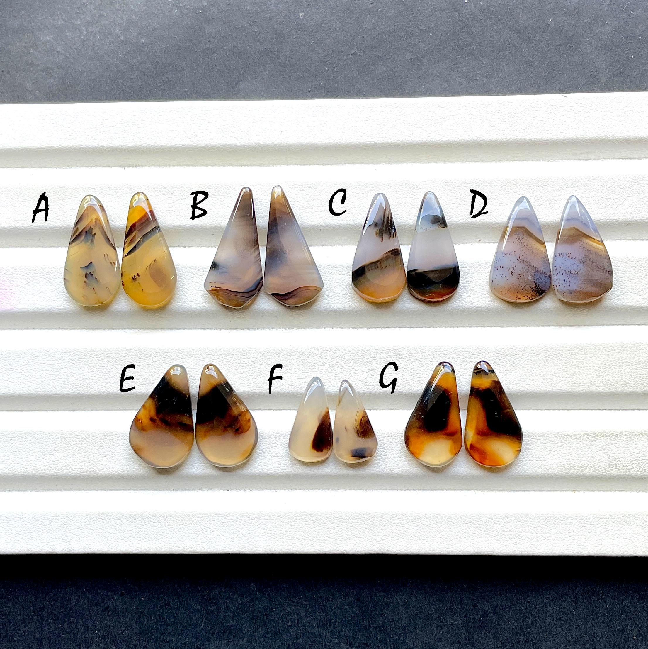 NEW Yellowstone River Montana Agate Pair Cabochon Gemstone For Jewelry Making, AAA+ Montana Agate Cabochon Pair For Earrings
