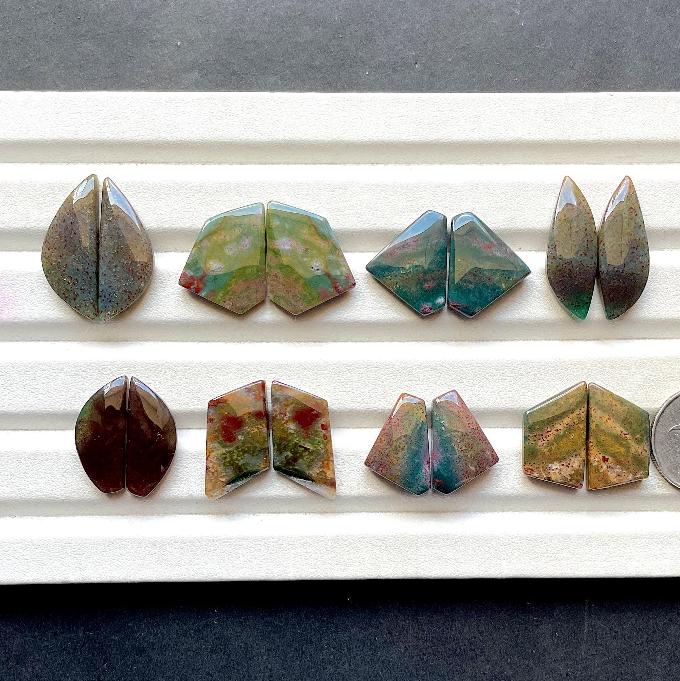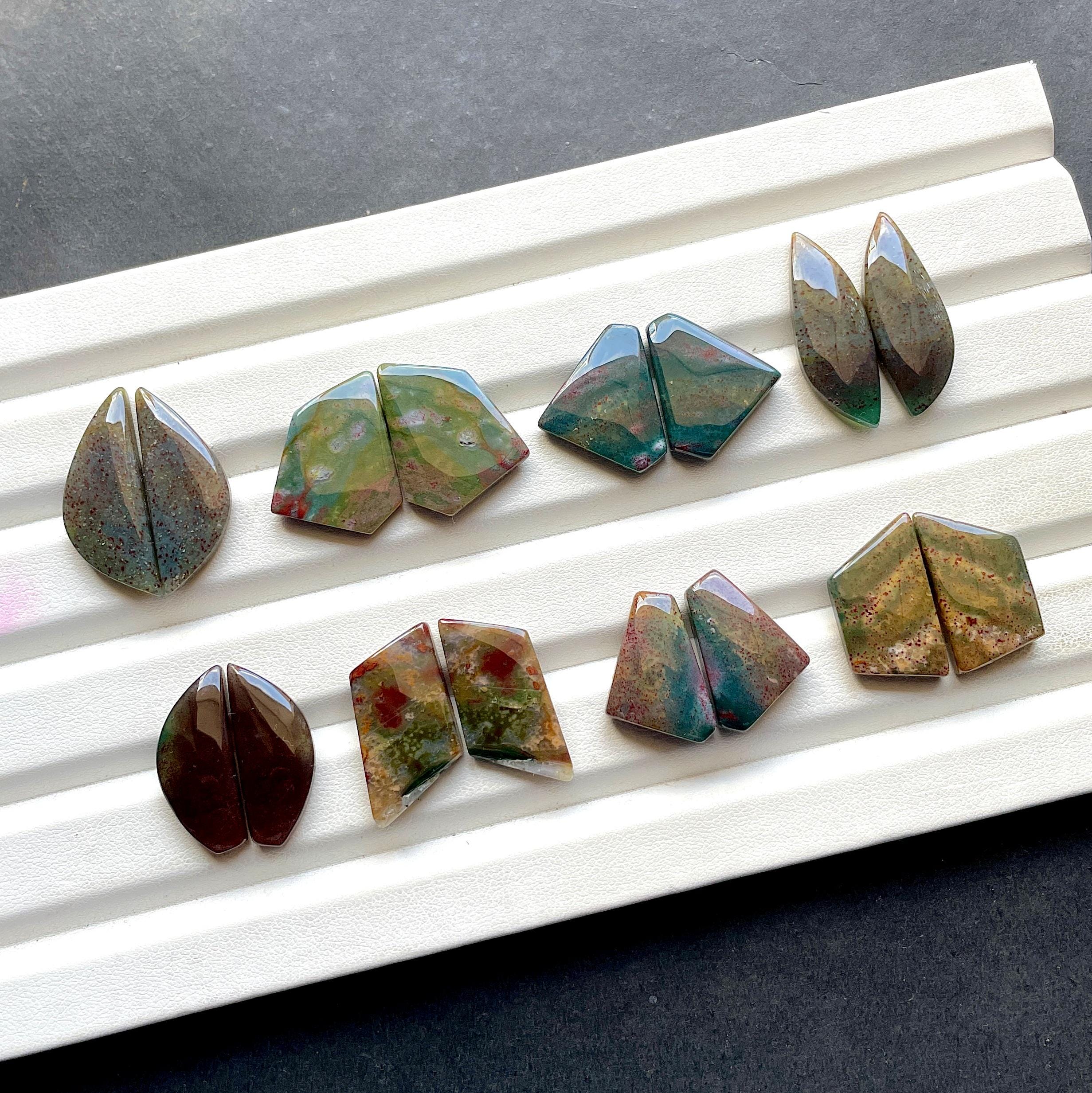 Rare Blood Moss Agate Pair Cabochon Loose Gemstone For Jewelry Making, AAA+ Natural Blood Moss Agate Matching Pair For Earrings