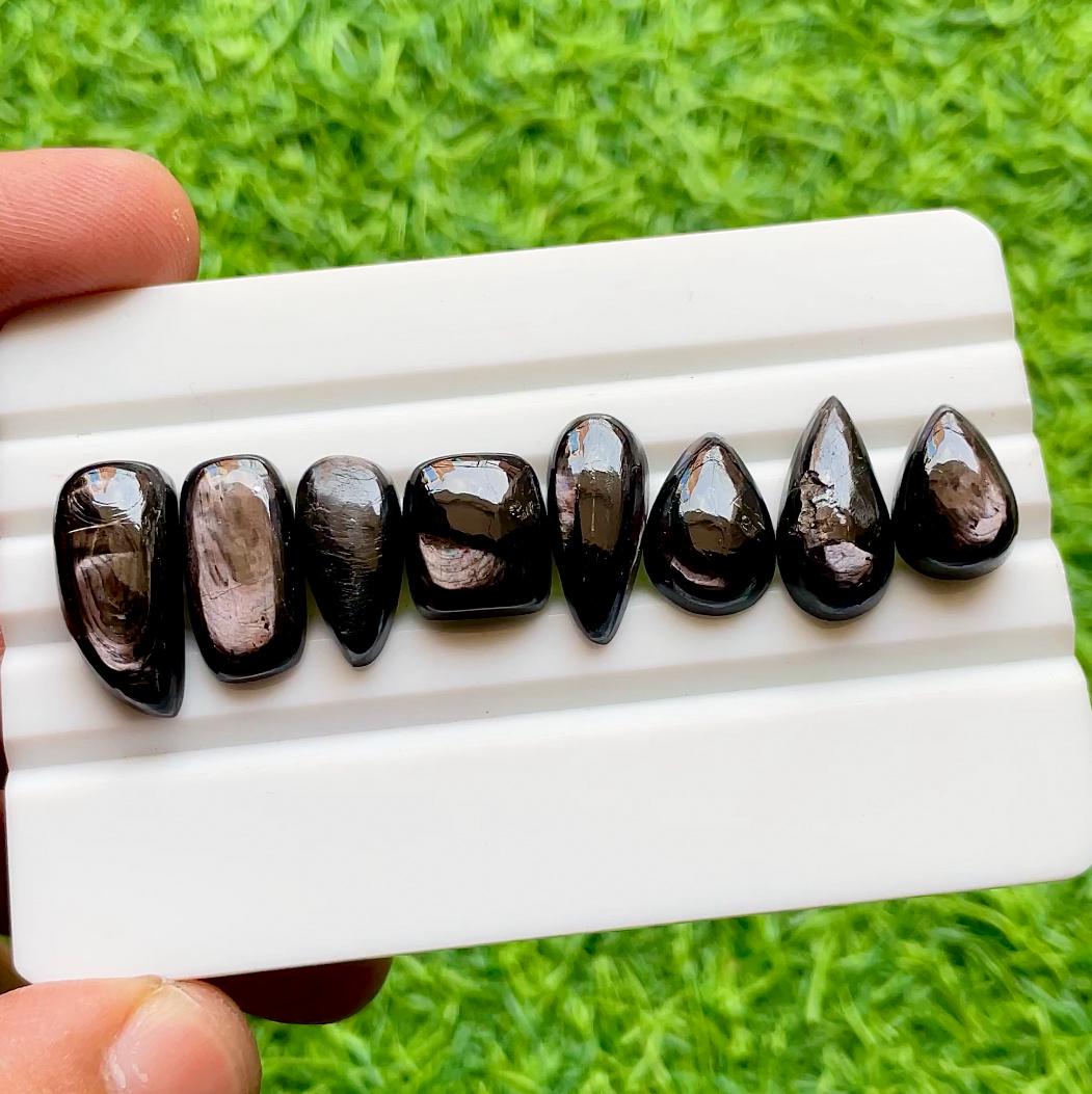 AAA+ Natural Hypersthene Cabochon Loose Gemstone 8 Pieces Lot For Jewelry Making, AAA+ Natural Hypersthene For Handmade Jewelry