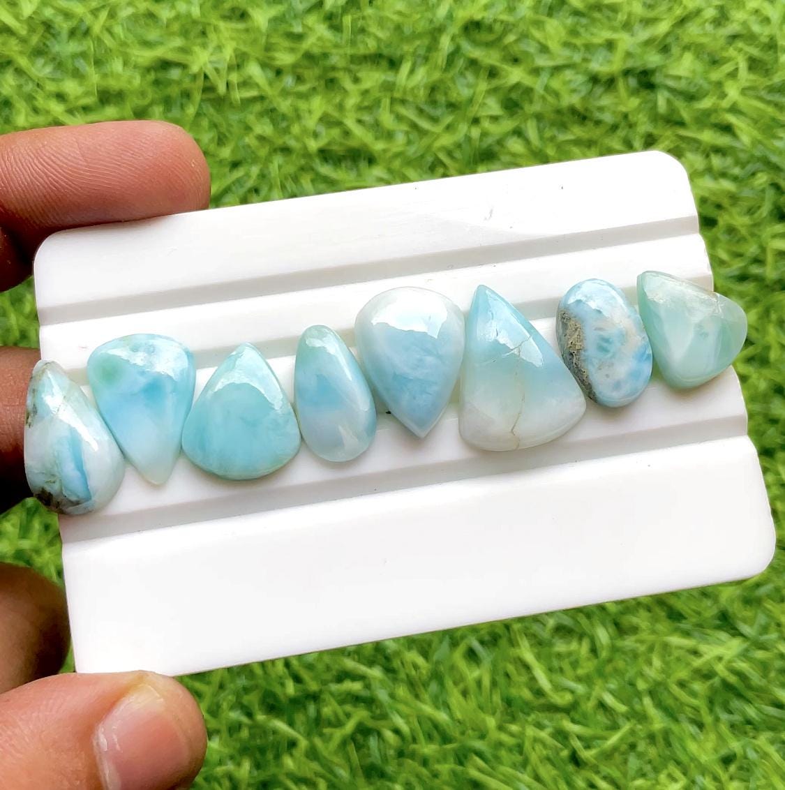 LARIMAR Cabochon Loose Gemstone 8 Pieces Lot For Jewelry Making, Natural AAA+ Larimar Cabochon For Handmade Jewelry