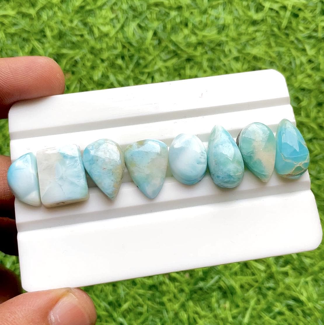 LARIMAR Cabochon Loose Gemstone 8 Pieces Lot For Jewelry Making, Natural AAA+ Larimar Cabochon For Handmade Jewelry
