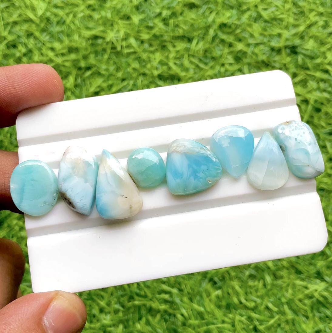 LARIMAR Cabochon Loose Gemstone 8 Pieces Lot For Jewelry Making, Natural AAA+ Larimar Cabochon For Handmade Jewelry