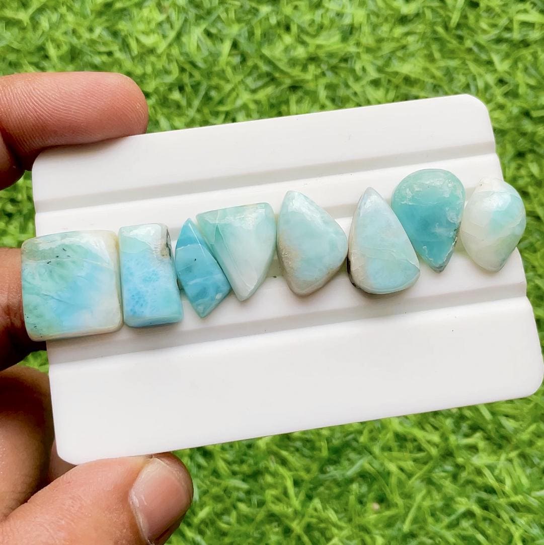 LARIMAR Cabochon Loose Gemstone 8 Pieces Lot For Jewelry Making, Natural AAA+ Larimar Cabochon For Handmade Jewelry