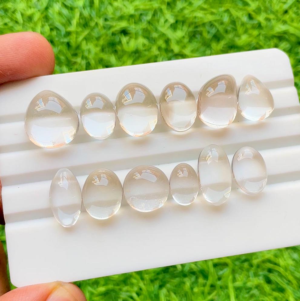 Natural Himalayan Clear Quartz Cabochon Loose Gemstone 12 Pieces Lot For Jewelry Making, AAA+ Natural Clear Quartz Cabochon For Handmade Jewelry And Wire Wrap