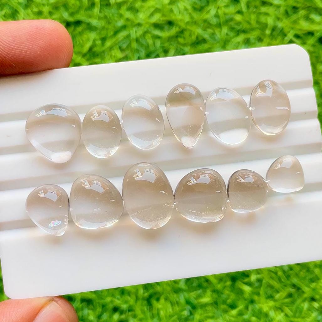 Natural Himalayan Clear Quartz Cabochon Loose Gemstone 12 Pieces Lot For Jewelry Making, AAA+ Natural Clear Quartz Cabochon For Handmade Jewelry And Wire Wrap