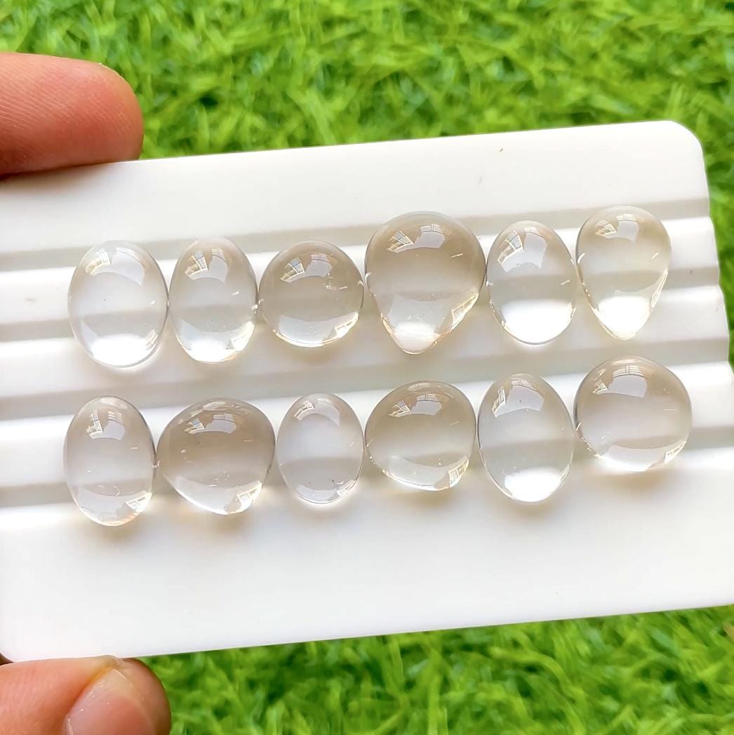 Natural Himalayan Clear Quartz Cabochon Loose Gemstone 12 Pieces Lot For Jewelry Making, AAA+ Natural Clear Quartz Cabochon For Handmade Jewelry And Wire Wrap