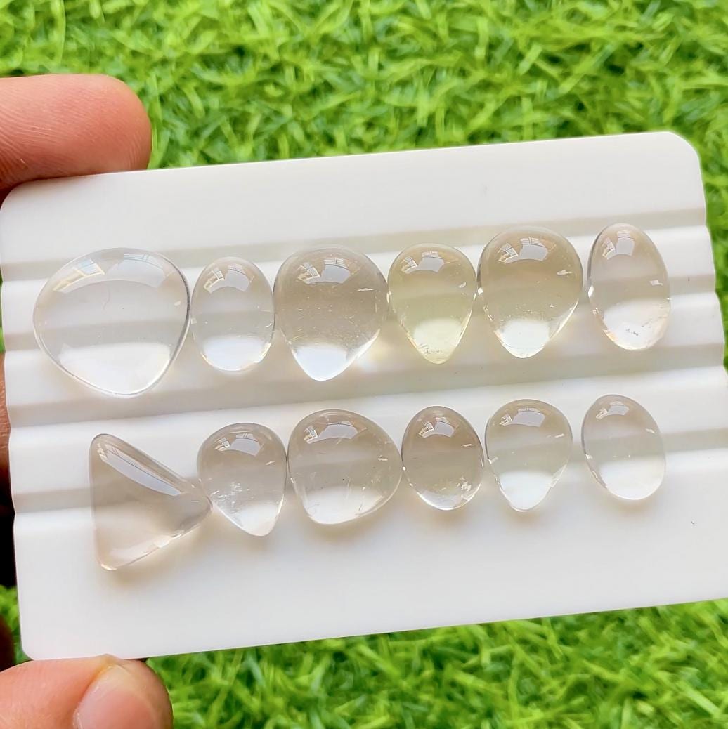 Natural Himalayan Clear Quartz Cabochon Loose Gemstone 12 Pieces Lot For Jewelry Making, AAA+ Natural Clear Quartz Cabochon For Handmade Jewelry And Wire Wrap