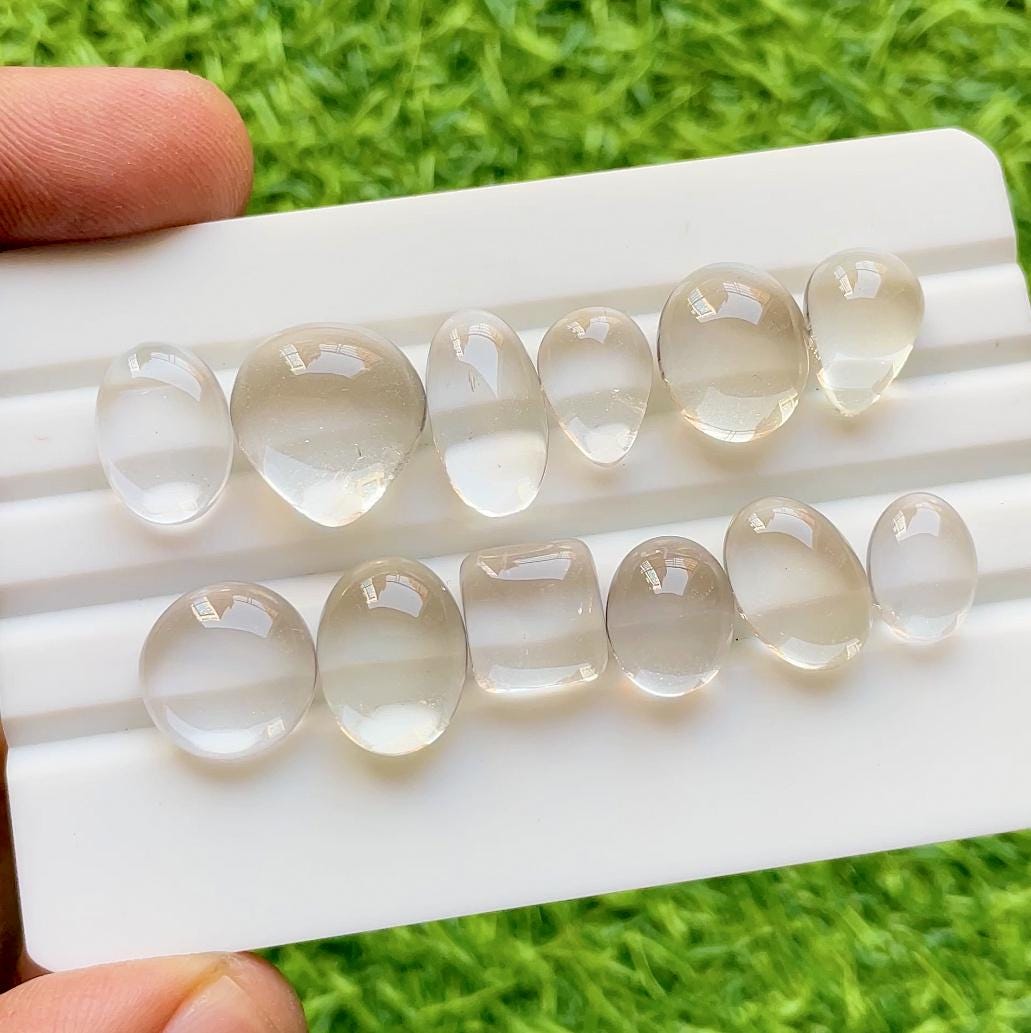 Natural Himalayan Clear Quartz Cabochon Loose Gemstone 12 Pieces Lot For Jewelry Making, AAA+ Natural Clear Quartz Cabochon For Handmade Jewelry And Wire Wrap