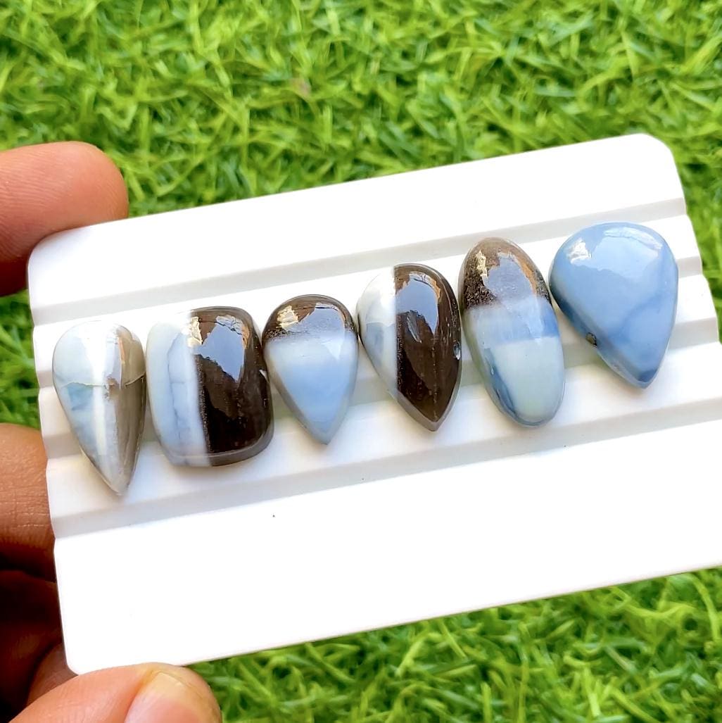 Blue Owyhee Opal Cabochon Loose Gemstone 6 Pieces Lot, AAA+ Natural Blue Owyhee Opal For Handmade Jewelry