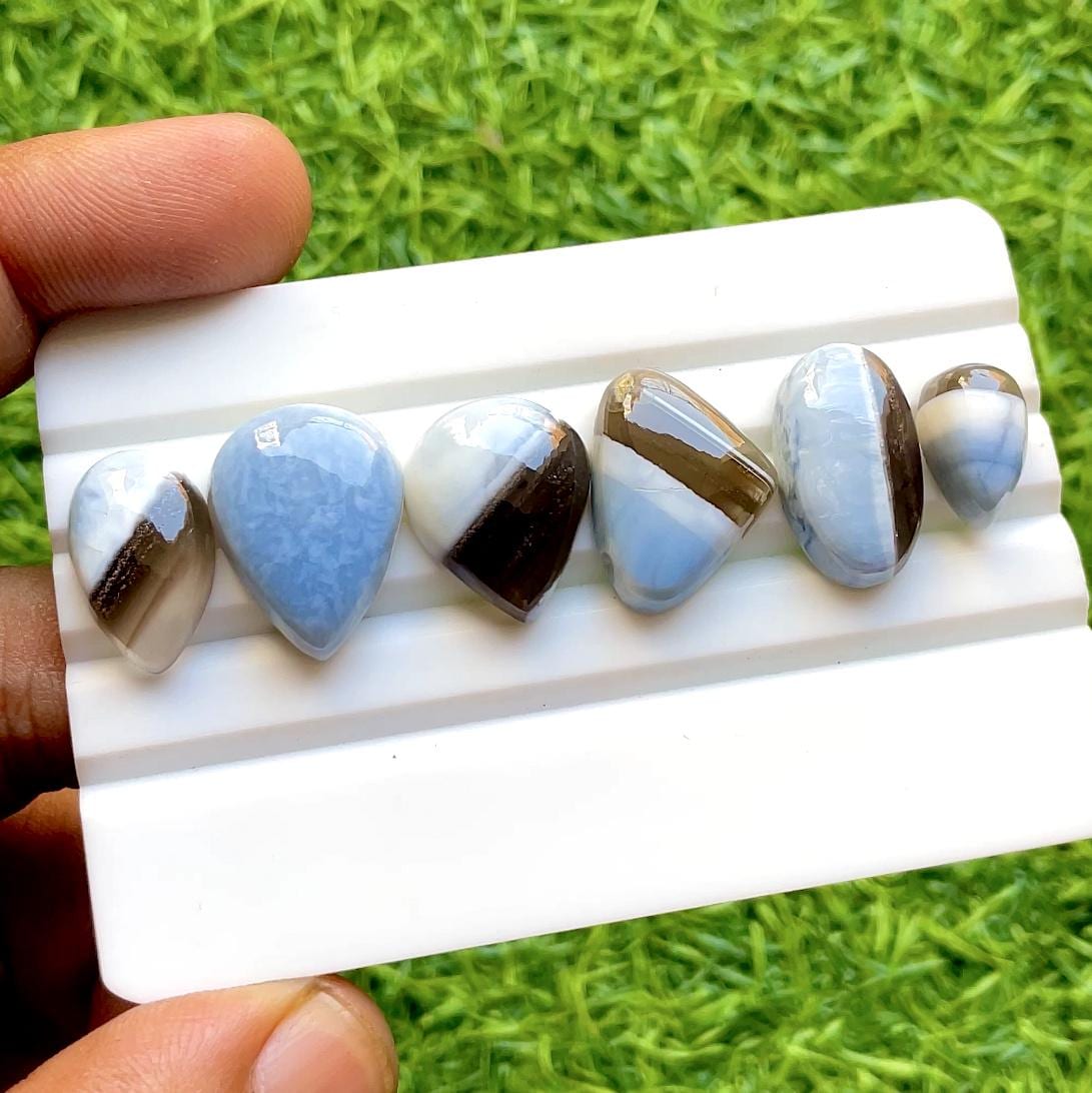 Blue Owyhee Opal Cabochon Loose Gemstone 6 Pieces Lot, AAA+ Natural Blue Owyhee Opal For Handmade Jewelry