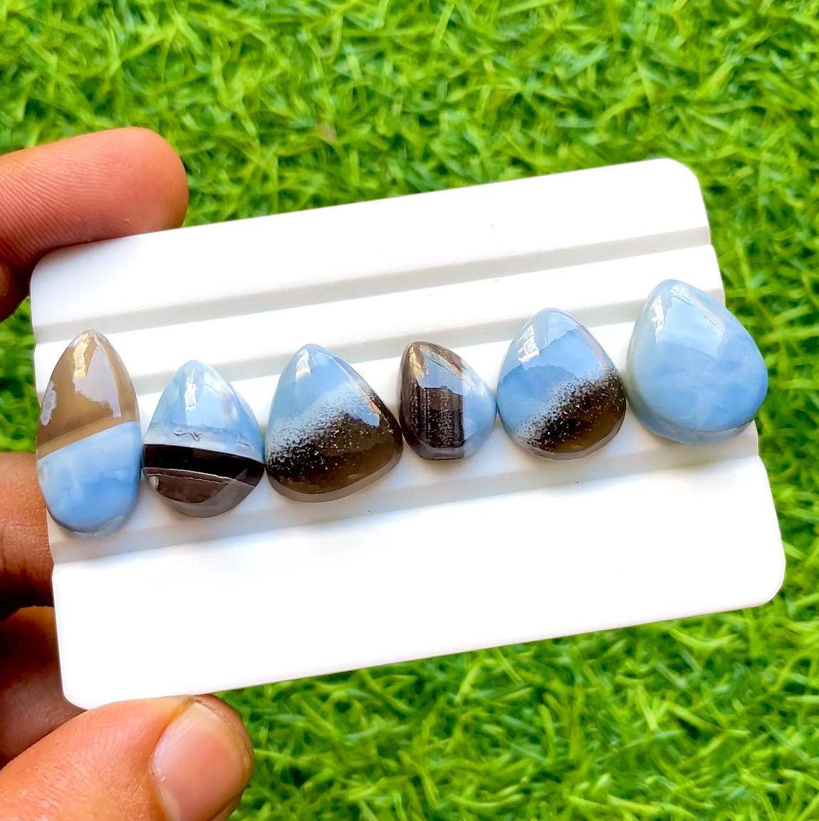 Blue Owyhee Opal Cabochon Loose Gemstone 6 Pieces Lot, AAA+ Natural Blue Owyhee Opal For Handmade Jewelry