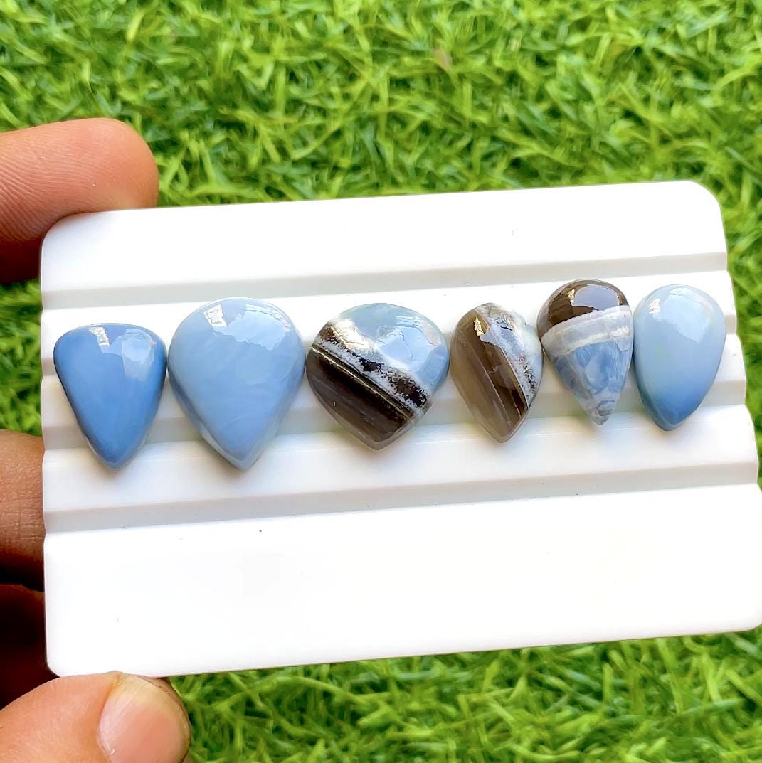 Blue Owyhee Opal Cabochon Loose Gemstone 6 Pieces Lot, AAA+ Natural Blue Owyhee Opal For Handmade Jewelry