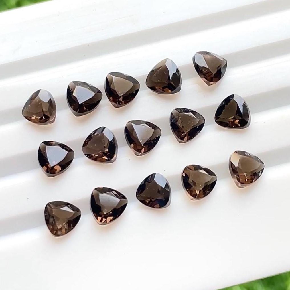 NATURAL Smokey Quartz 6 MM Faceted Trillion Shape With Pointed Back Gemstone 15 Pieces Lot For Jewelry Making, AAA+ Smokey Quartz For Handmade Jewelry