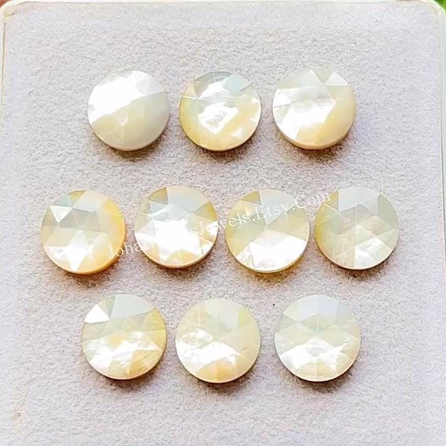 NATURAL Mother Of Pearl 10 MM Round Shape Rosecut With Flat Back Gemstone 10 Pieces Lot, AAA+ Natural Mother Of Pearl Used For Jewelry Making