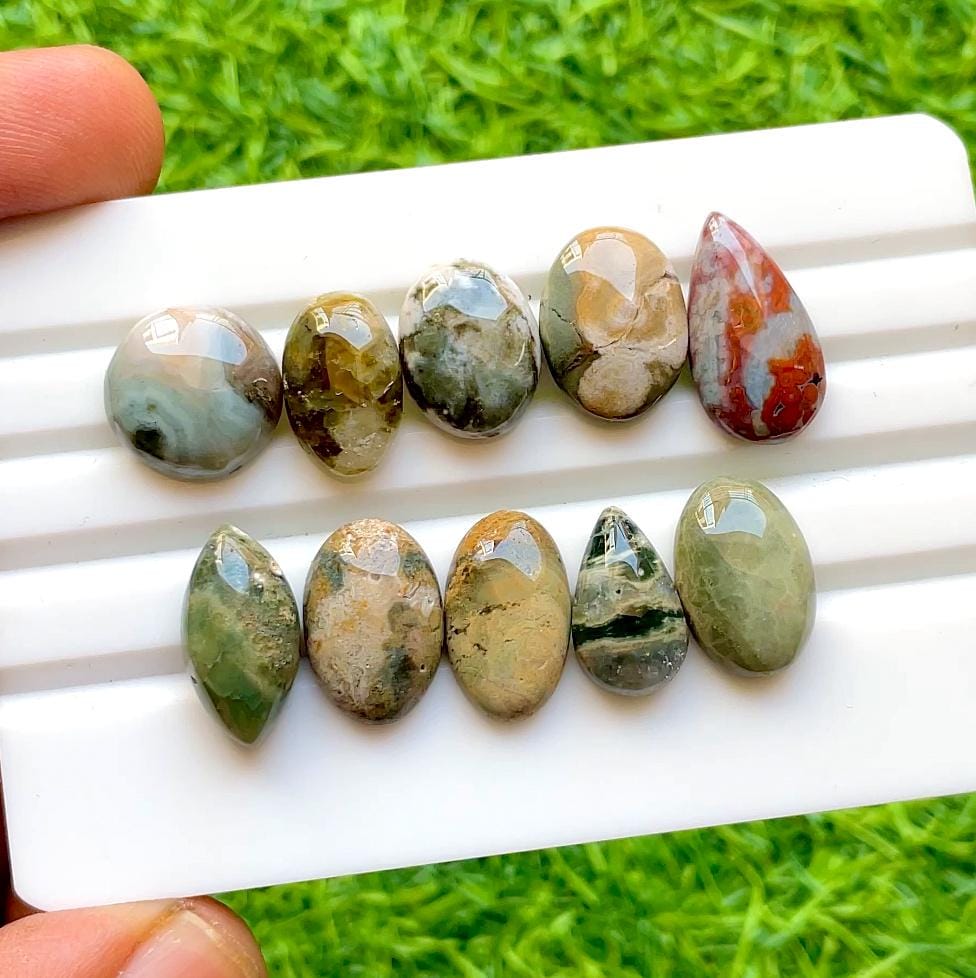 AAA+ NATURAL Ocean Jasper Cabochon Loose Gemstone 10 Pieces Lot, AAA+ Natural Ocean Jasper Cabochon For Handmade Jewelry And Wire Wrap