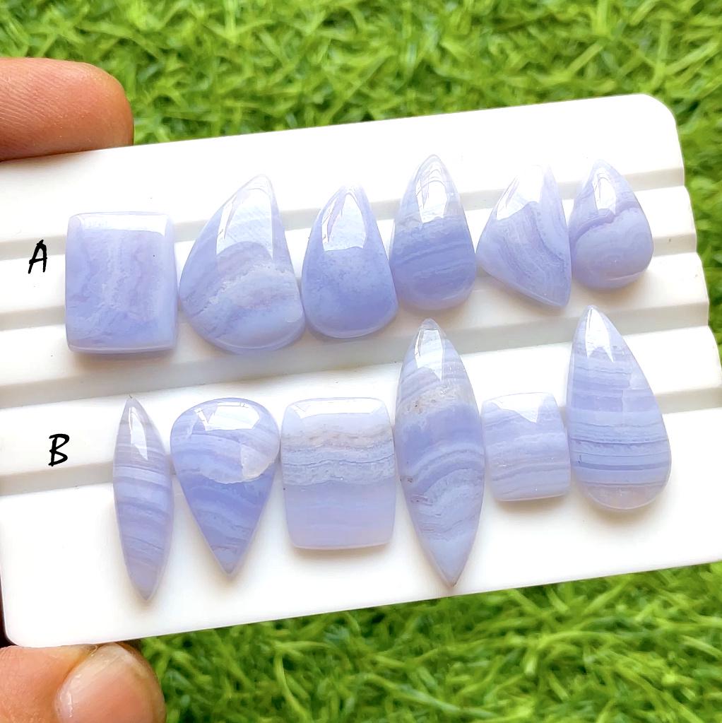 Blue Lace Agate Cabochon Loose Gemstone 6 Pieces Lot For Jewelry Making, AAA+ Natural Blue Lace Agate Cabochon Lot
