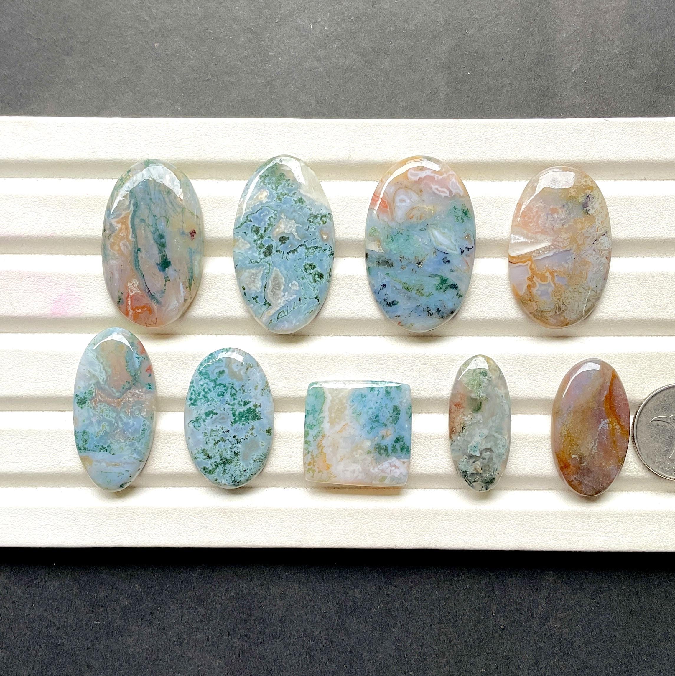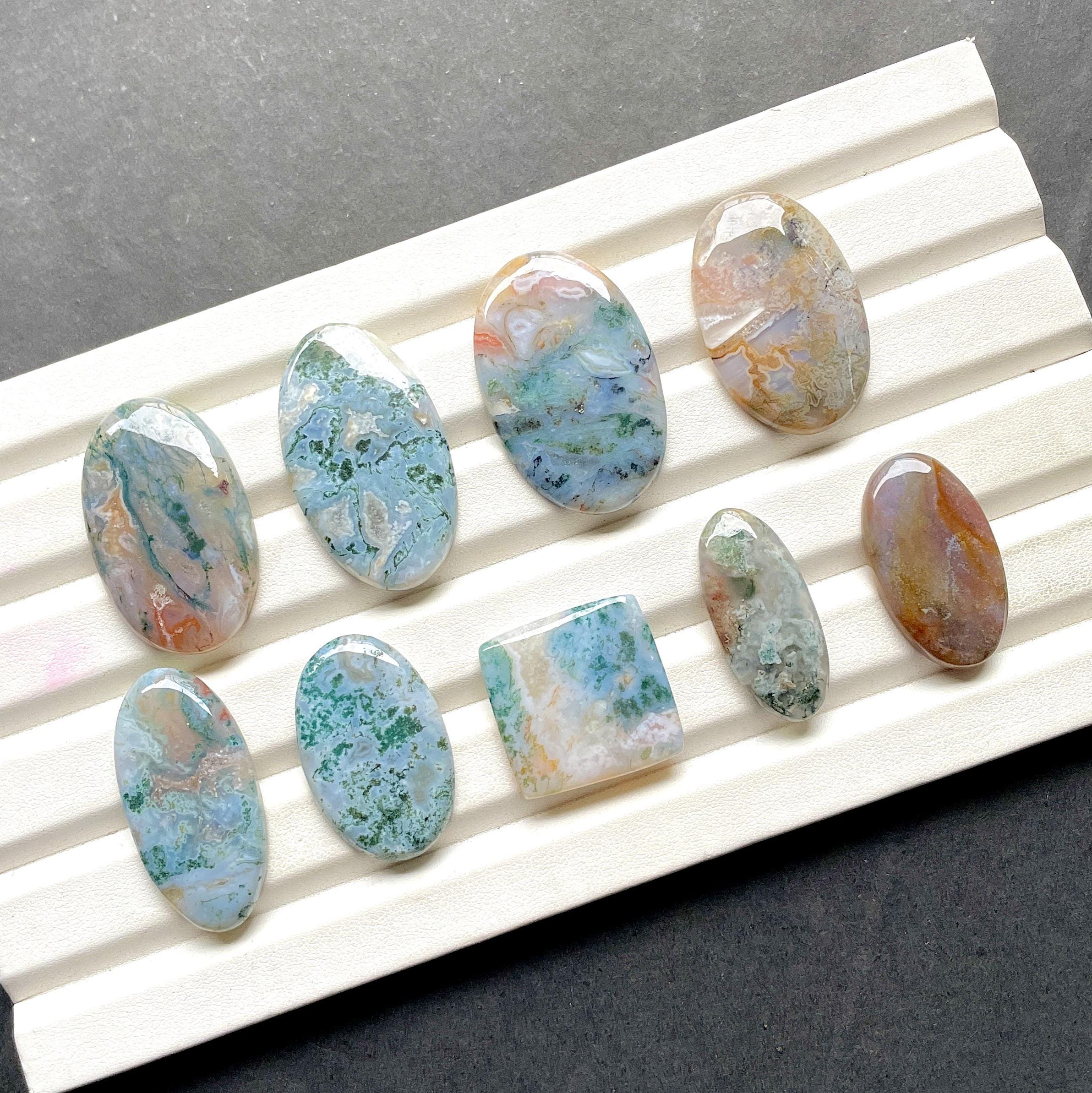 New Indonesian Moss Agate Cabochon Loose Gemstone For Jewelry Making, AAA+ Natural Moss Agate Cabochon For Handmade Jewelry