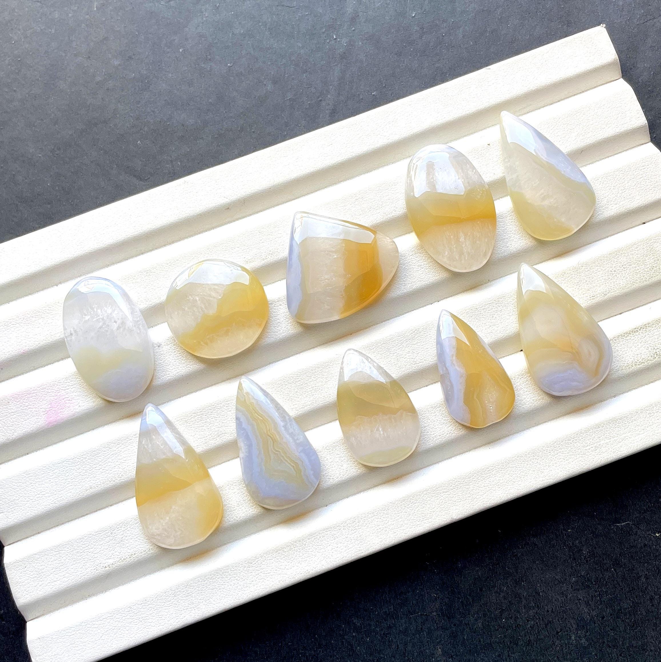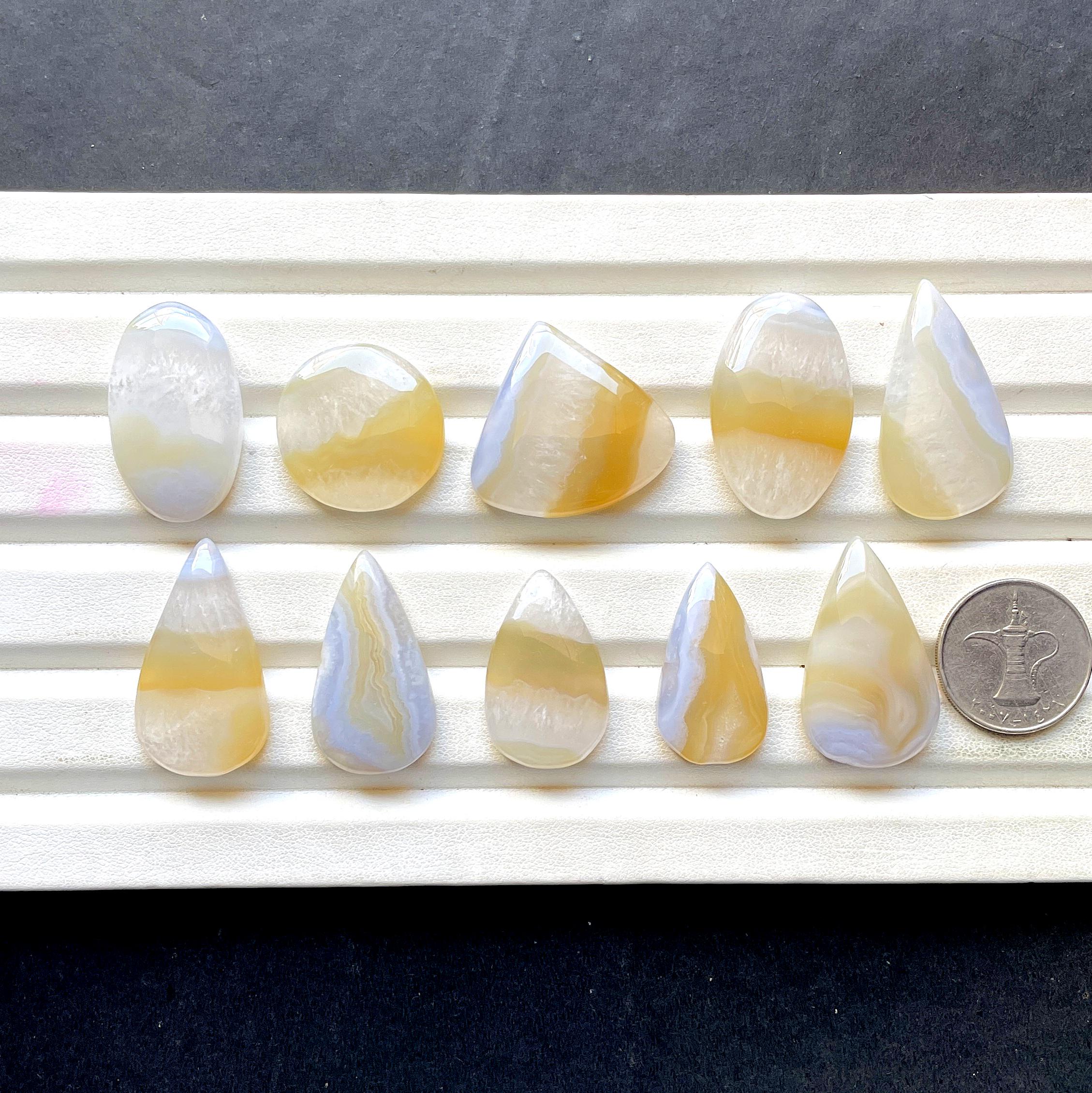Beautiful Bio Blue Lace Agate With Yellow Cabochon Gemstone For Jewelry Making, AAA+ Natural Bio Blue Lace Agate For Wire Wrap