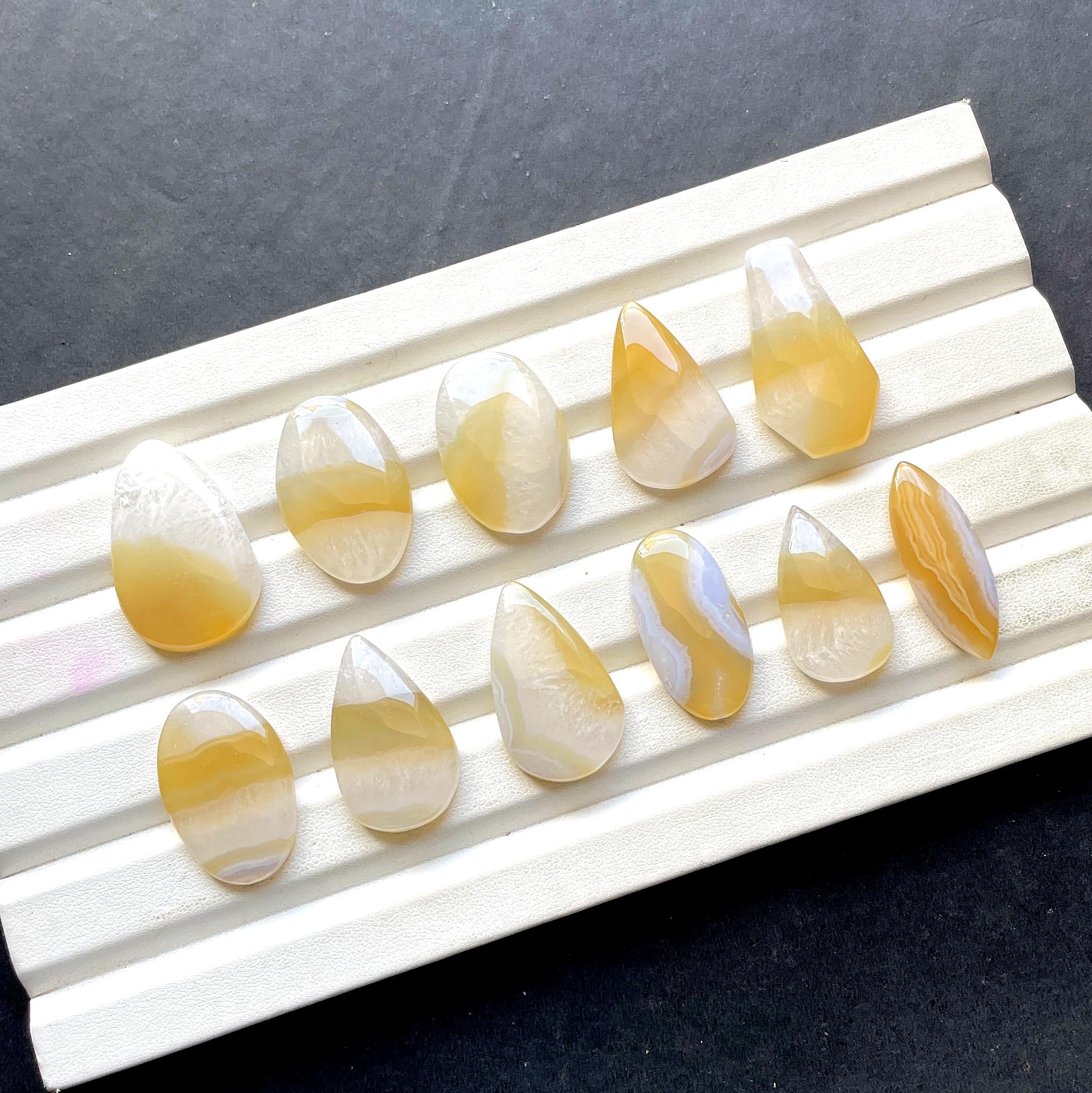 Beautiful Bio Blue Lace Agate With Yellow Cabochon Gemstone For Jewelry Making, AAA+ Natural Bio Blue Lace Agate For Wire Wrap